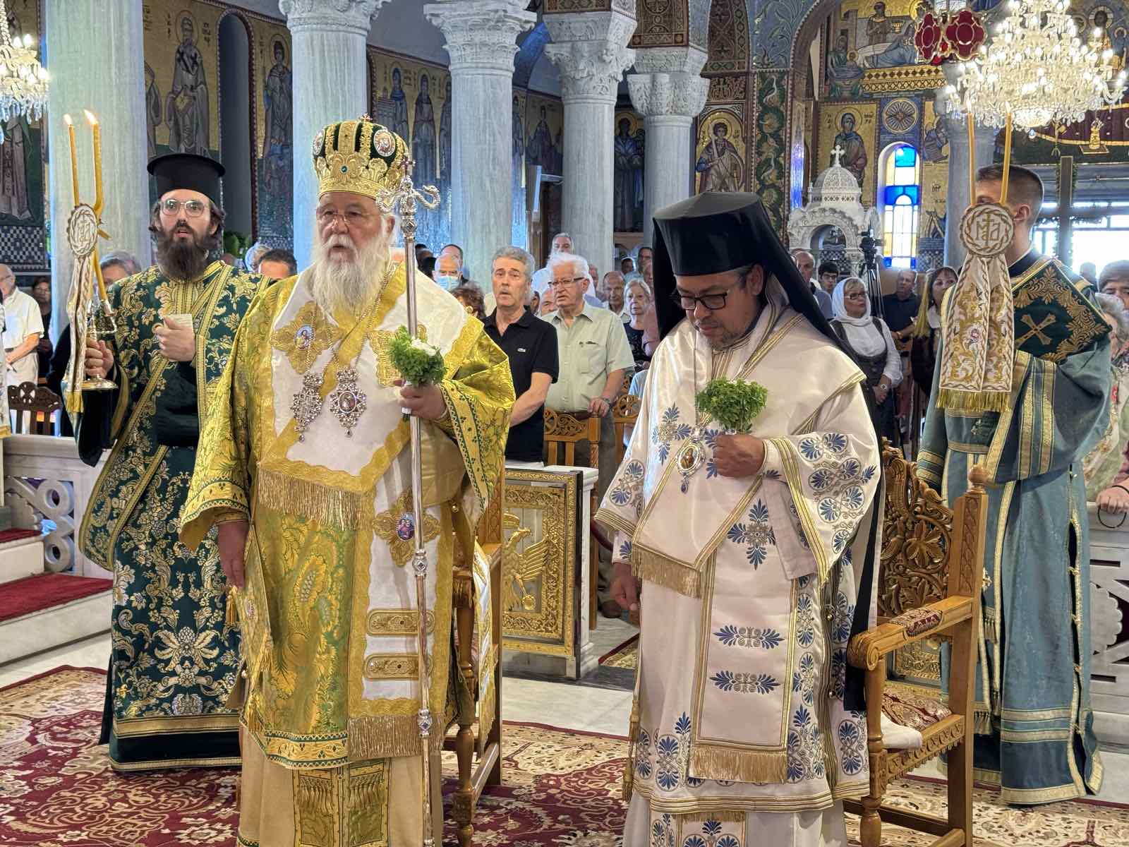 Ο Σεβασμιώτατος ανταποκρινόμενος στην ευγενική πρόσκληση του Σεβασμιωτάτου Μητροπολίτου Δημητριάδος και Αλμυρού κ. Ιγνατίου, συνιερούργησε μετά του Θεοφιλεστάτου Επισκόπου Άσσου κ. Τιμοθέου, προερχομένου εκ Κολομβίας. Επίσης, συλλειτούργησε με τον Πανοσιολογιώτατον Αρχιμανδρίτην π. Καλλίνικον Γεωργακόπουλο, Προϊστάμενο του Ιερού Ναού και Γενικό Αρχιερατικό Επίτροπο της Ιεράς Μητροπόλεως Δημητριάδος, με τον Πανοσιολογιώτατον Αρχιμανδρίτην π. Δοσίθεον Παπαμήτρο, εκπαιδευτικό και Ιεροκήρυκα της Ιεράς Μητροπόλεως Κερκύρας καθώς και με τους άλλους Ιερείς του ως άνω Ιερού Ναού. Ιδιαίτερα δε με τον μετά πολλών ετών συνεφημέριό του εις την ανωτέρω ενορία Αιδ. Πρωτοπρεσβύτερο π. Απόστολο Θάνο.