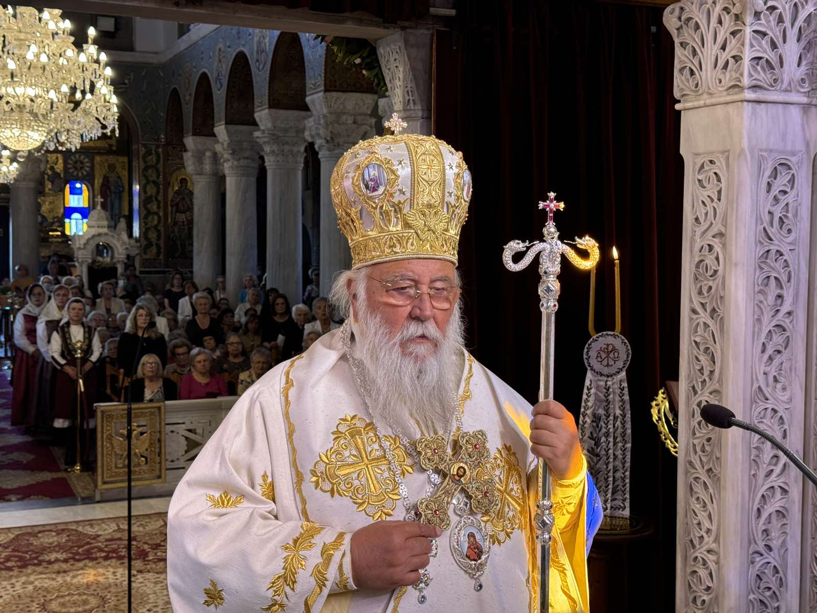 Κατά τη Θεία Λειτουργία, ο Σεβ. απευθυνόμενος εις το πυκνότατο εκκλησίασμα, ανεφέρθη στο αποστολικό ανάγνωσμα της ημέρας. Έλαβε αφορμή από το λόγο του Αποστόλου Παύλου προς τους Γαλάτας «εἰ γὰρ ἃ κατέλυσα ταῦτα πάλιν οἰκοδομῶ, παραβάτην ἐμαυτὸν συνίστημι». Στην Γαλατία, όπου ο Απόστολος Παύλος στην πρώτη του αποστολική περιοδεία την επισκέφτηκε και κήρυξε το Ευαγγέλιο της Αναστάσεως του Χριστού, υπήρξε μια διάσταση των θεολογικών απόψεων του Αποστόλου με τους ιουδαΐζοντες Χριστιανούς. Εκείνοι, υποστήριζαν ότι ο μωσαϊκός νόμος δεν πρέπει να απαλειφθεί στην πρακτική ζωή των Χριστιανών, δηλαδή η περιτομή και άλλα έθιμα τα οποία τηρούσαν οι Ιουδαίοι. Η θεολογία του Αποστόλου Παύλου έλεγε ότι ο νόμος που εδόθη από τον Θεό ήταν παιδαγωγός εις Χριστόν και ότι μετά την σάρκωση του Λόγου του Θεού και την εν Χριστώ αναγέννησή μας, αυτά είναι περιττά για τον εν χριστώ αναγεννημένο άνθρωπο καθώς πρέπει να περιτέμνουμε την κακία και την κάθε είδους αμαρτία, η οποία προσβάλει την ψυχή του ανθρώπου και αμαυρώνει τον νουν. Τα ιουδαϊκά έθιμα είναι απλώς εξωτερικά γνωρίσματα. Λέγοντας λοιπόν ο Απόστολος Παύλος ότι εάν αυτά τα οποία τα καταργήσαμε για να αποδεχτούμε τον αληθινό Θεό στη ζωή μας και να ζήσουμε την ζωή της αφθαρσίας και την υπέρβαση του θανάτου, ψυχικού τε και σωματικού, εάν επανέλθουμε στα προηγούμενα, τότε γινόμαστε παραβάτες της συνειδήσεώς μας και των υποσχέσεών μας έναντι του Θεού, «Ὁ λαός οὖτος τοῖς χείλεσί μέ τιμᾶ, ἡ δέ καρδία αὐτῶν πόρρω ἀπέχει ἀπ’ ἐμοῦ». Σήμερα, καταντήσαμε να είμαστε Χριστιανοί των τύπων, της επιφάνειας, των λόγων και όχι των έργων της αγάπης και της θυσίας.