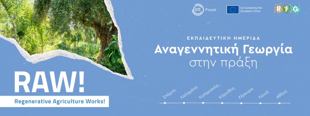 Είμαστε στην ευχάριστη θέση να διεξάγουμε μονοήμερες εκπαιδεύσεις σε επτά (7) διαφορετικές περιοχές ανά την Ελλάδα με στόχο την εκπαίδευση των αγροτών την εκάστοτε περιοχής, τη σύνδεση ομοϊδεατών αγροτών μεταξύ τους και με το εθνικό μας δίκτυο και άλλα τοπικά δίκτυα για την αναγεννητική γεωργία. Οι εκπαιδεύσεις αυτές λειτουργούν επίσης ως ένα πρώτο βήμα ώστε κάποιοι αγρότες να επιλεγούν σε ένα τριετές πρόγραμμα υποστήριξης από το EIT Food.