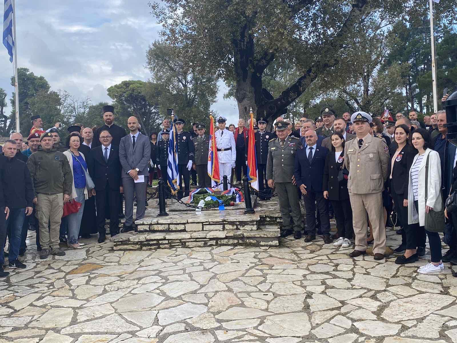 Στη συνέχεια, σε κλίμα συγκίνησης, ακολούθησε τελετή στο κοιμητήριο της Υπεραγίας Θεοτόκου Ζωοδόχου Πηγής στην Κάτω Κορακιάνα, αποτίοντας φόρο τιμής σε έναν από τους πολλούς τόπους ταφής Σέρβων, που άφησαν την τελευταία τους πνοή στο νησί μας την περίοδο 1916 – 1918.