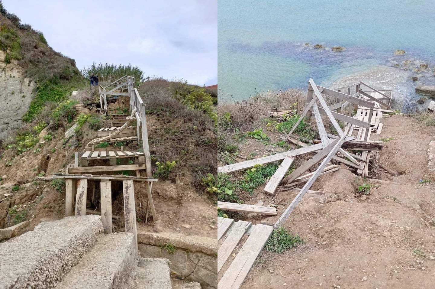 Λίγο ο καιρός, λίγο η μορφολογία του εδάφους, η ξύλινη σκάλα που οδηγούσε στη θάλασσα στο Λογγά των Περουλάδων σχεδόν κατέρρευσε…