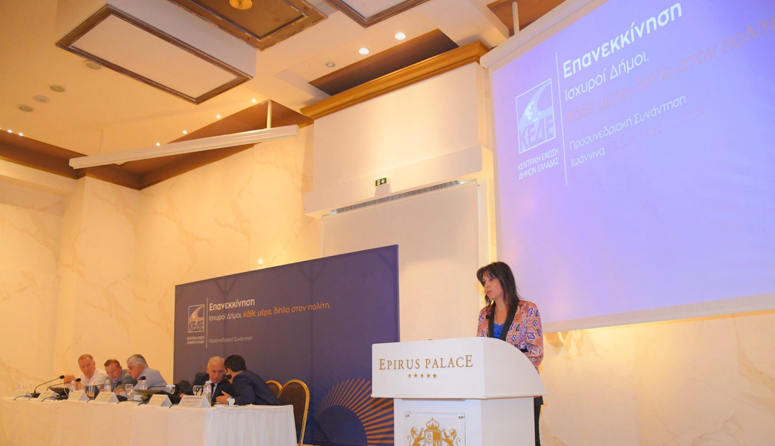 Στην εισήγηση της στην Προσυνεδριακή Συνάντηση της ΚΕΔΕ στα Ιωάννινα, η Μερόπη –Σπυριδούλα Υδραίου ως μέλος του ΔΣ της ΚΕΔΕ και Αντιπρόεδρος της Επιτροπής Υποδομών, Μεταφορών και Δικτύων, αναφέρθηκε στην ανάγκη εύρεσης πόρων και προσωπικού για τη λειτουργική επάρκεια των Δήμων και την εξυπηρέτηση των υπηρεσιών που καλούνται να παρέχουν στους δημότες.