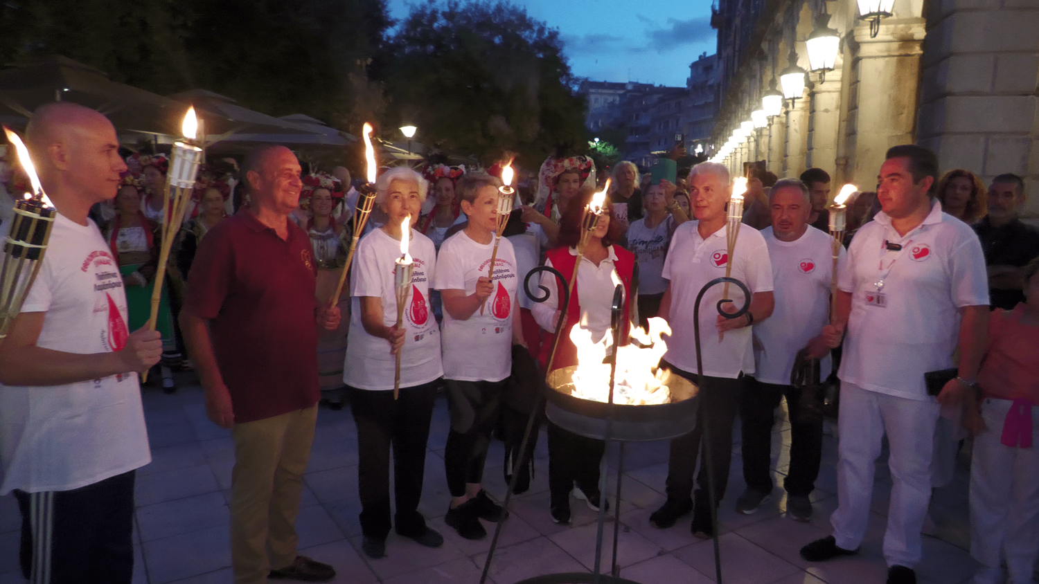 Στην εκδήλωση συμμετείχε και πολυπληθές τμήμα κρουστών της Παλαιάς Φιλαρμονικής ενώ ο πρόεδρος της ΦΕΚ παρέλαβε συμβολικά μία δάδα με την Φλόγα της Αγάπης της Εθελοντικής Αιμοδοσίας όπου και με την συμμετοχή λοιπών εκπρόσωπων του Πολιτισμού, της Εκπαίδευσης και Δομών Υγείας συμμετείχε στην τελετή αφής του αντίστοιχου βωμού στο κέντρο της πόλης.