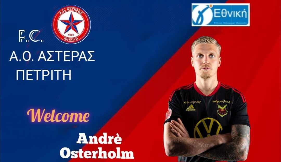 Ο Αστέρας ανακοινώνει την απόκτηση του Σουηδού επιθετικού Andrè Osterholm. Ο Andrè ειναι 28 ετών και αγωνιζόταν την περασμένη σεζόν στην Naestved Boldklub, Β’ κατηγορίας Δανίας. Τον καλωσορίζουμε στον Αστέρα και του ευχόμαστε υγεία και επιτυχίες!