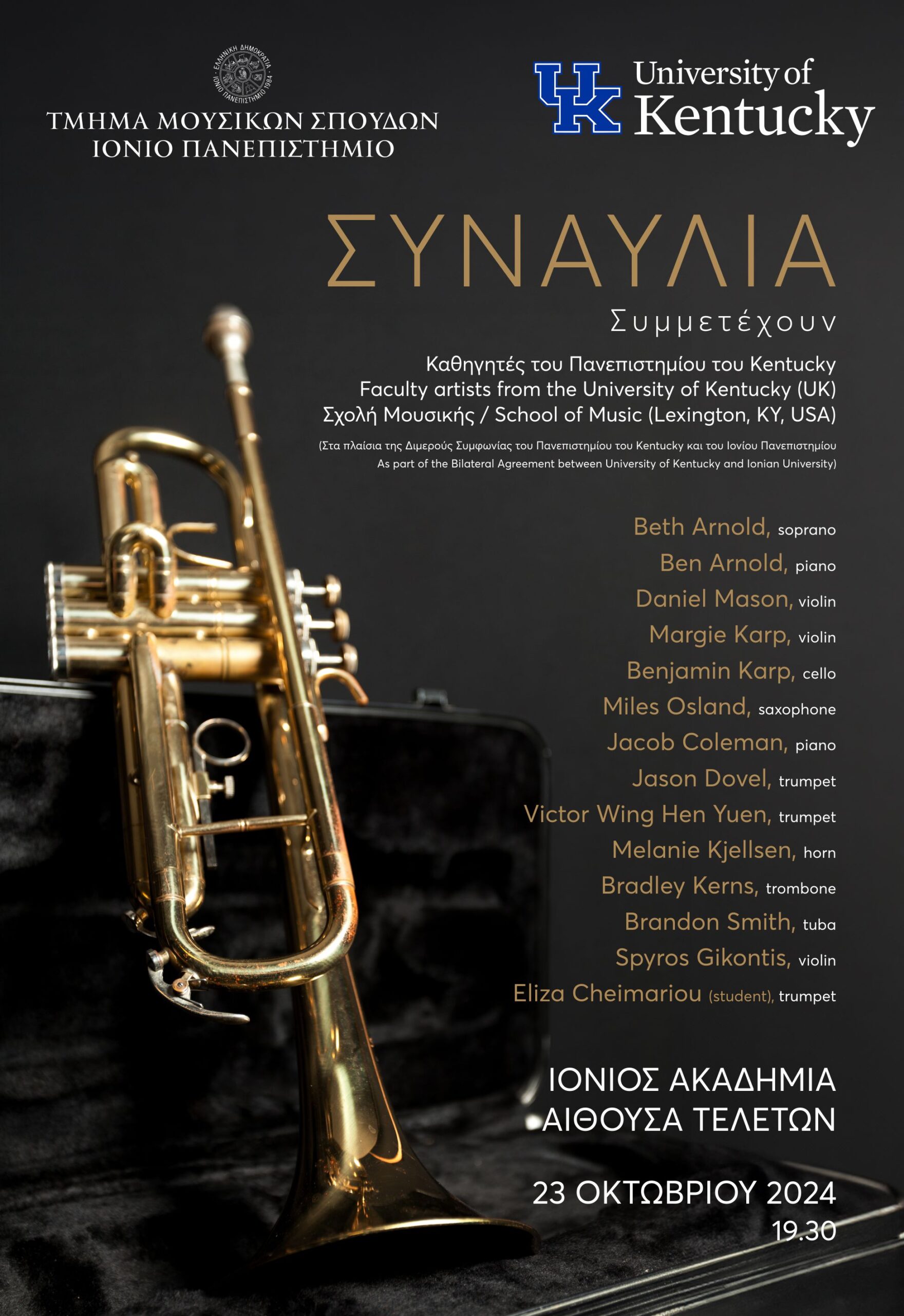 (Στο πλαίσιο της Διμερούς Συμφωνίας του Πανεπιστημίου του Kentucky και του Ιονίου Πανεπιστημίου/As part of the Bilateral Agreement between University of Kentucky and Ionian University)