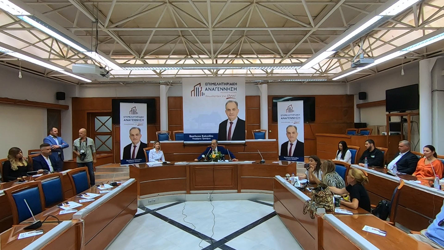 Το σχέδιο στήριξης και ανάπτυξης όλων των επιχειρήσεων της Κέρκυρας ανέπτυξε ο υποψήφιος Πρόεδρος του Επιμελητηρίου Κέρκυρας Βασίλης Καλούδης στην παρουσίαση του συνδυασμού του «Επιμελητηριακή Αναγέννηση» που έγινε σήμερα το μεσημέρι στην αίθουσα συνεδριάσεων της πρώην Νομαρχίας.