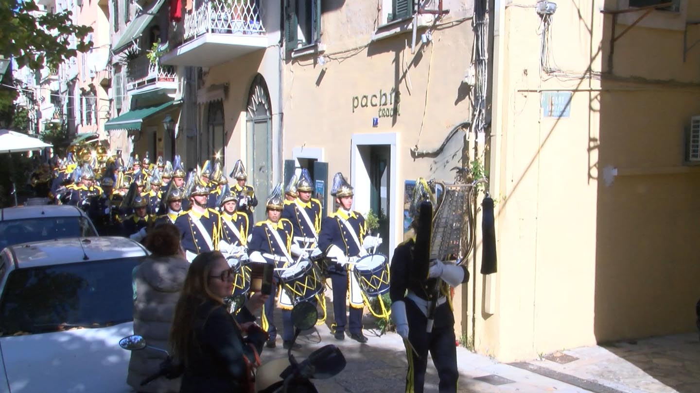 Κατά τη διάρκεια της Ιταλικής Κατοχής, οι μαθητές και οι μαθήτριες των -τότε- Εξαταξίων Γυμνασίων Αρρένων και Θηλέων, μετά τη Λιτανεία, δεν διαλύθηκαν. Έχοντας κρυμμένες μέσα στις στολές τους Ελληνικές Σημαίες, παρέλασαν εν σώματι, τραγουδώντας το “Κέρκυρα”.