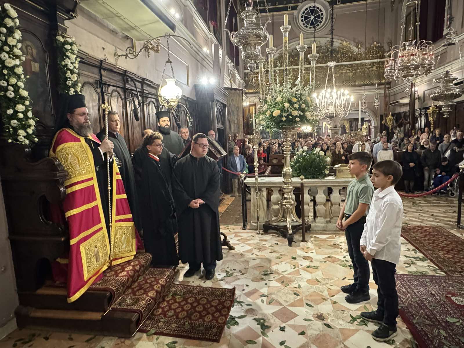 Στο κατάμεστο από πιστούς Ιερό Προσκύνημα του Αγίου Σπυρίδωνος ξεκίνησαν το απόγευμα του Σαββάτου 2 Νοεμβρίου 2024 οι λατρευτικές εκδηλώσεις για το Πρωτοκύριακο, στο οποίο οι Κερκυραίοι θυμούνται το θαύμα διασώσεως της νήσου από την πανώλη που έκανε ο Άγιος Σπυρίδων το 1673. Στον Πολυαρχιερατικό Εσπερινό χοροστάτησε ο Σεβασμιώτατος Μητροπολίτης Αιτωλίας και Ακαρνανίας κ. Δαμασκηνός, ενώ συγχοροστάτησαν οι Σεβασμιώτατοι Μητροπολίτες Δημητριάδος και Αλμυρού κ. Ιγνάτιος και Ρούσε (Πατριαρχείο Βουλγαρίας) κ. Ναούμ, μαζί με τον οικείο Ποιμενάρχη Σεβασμιώτατο Μητροπολίτη Κερκύρας, Παξών και Διαποντίων Νήσων κ. Νεκτάριο.