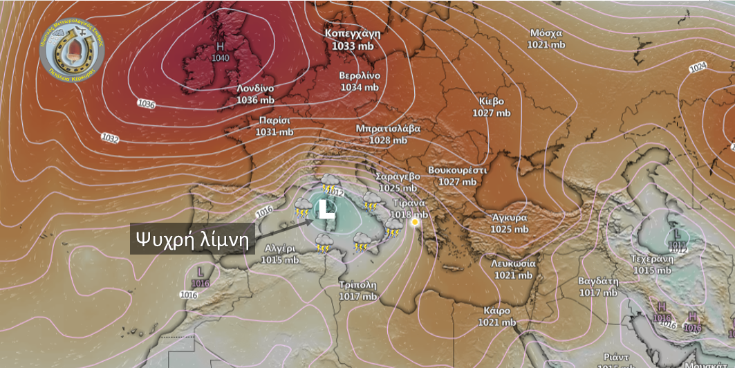 Σύμφωνα με τα νεότερα διαθέσιμα προγνωστικά στοιχεία του ιδιωτικού ερασιτεχνικού μετεωρολογικού σταθμού Πετάλειας, διακρίνεται από το Ευρωπαϊκό μοντέλο ECMWF, το βαρομετρικό χαμηλό θα βρίσκεται την επομένη εβδομάδα (13-14 Νοεμβρίου) στα βορειοδυτικά της γαλλοιταλικής χερσονήσου και της Κορσικής, της Σαρδηνίας, με το γράμμα (L) στο κέντρο του, καθώς είναι μια «Ψυχρή Λίμνη», (δηλαδή μια αποκομμένη μάζα σχετικά ψυχρών αερίων μαζών) θα επηρεάζει βροχές και καταιγίδες προβλέπονται σε μεγάλο μέρος της κεντρικής και νότιας της Ιταλίας, ενώ ο αντικυκλώνας με το γράμμα (Η) στο κέντρο του, καλύπτει σχεδόν όλη της Μεγάλης Βρετάνιας να περιορίζονται σαν στεφάνι περιφερειακά του αντικυκλώνα.