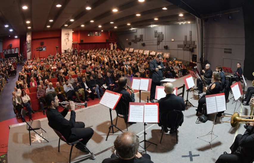 Οργανωτής της χθεσινής συναυλίας ήταν ο σύλλογος «Εμείς που σπουδάσαμε στον σοσιαλισμό», μαέστρος της ο Χρήστος Κολοβός και σολίστ η σοπράνο Ευδοκία Μωυσίδου. Το μουσικό σύνολο πνευστών και κρουστών «Παύλος Καρρέρ», σε δωδεκαμελή σύνθεση, απέδωσε 18 έργα συμφωνικής, οπερατικής και παραδοσιακής μουσικής, καθώς και επαναστατικά εμβατήρια, συμπεριλαμβανομένων έργων του Ντμίτρι Σοστακόβιτς και του Μίκη Θεοδωράκη. Την ενοργάνωση και μεταγραφή σειράς έργων για το δωδεκαμελές σύνολο πνευστών και κρουστών έκανε ο επίτιμος αρχιμουσικός της Φιλαρμονικής «Μάντζαρος» Σπύρος Μαυρόπουλος.
