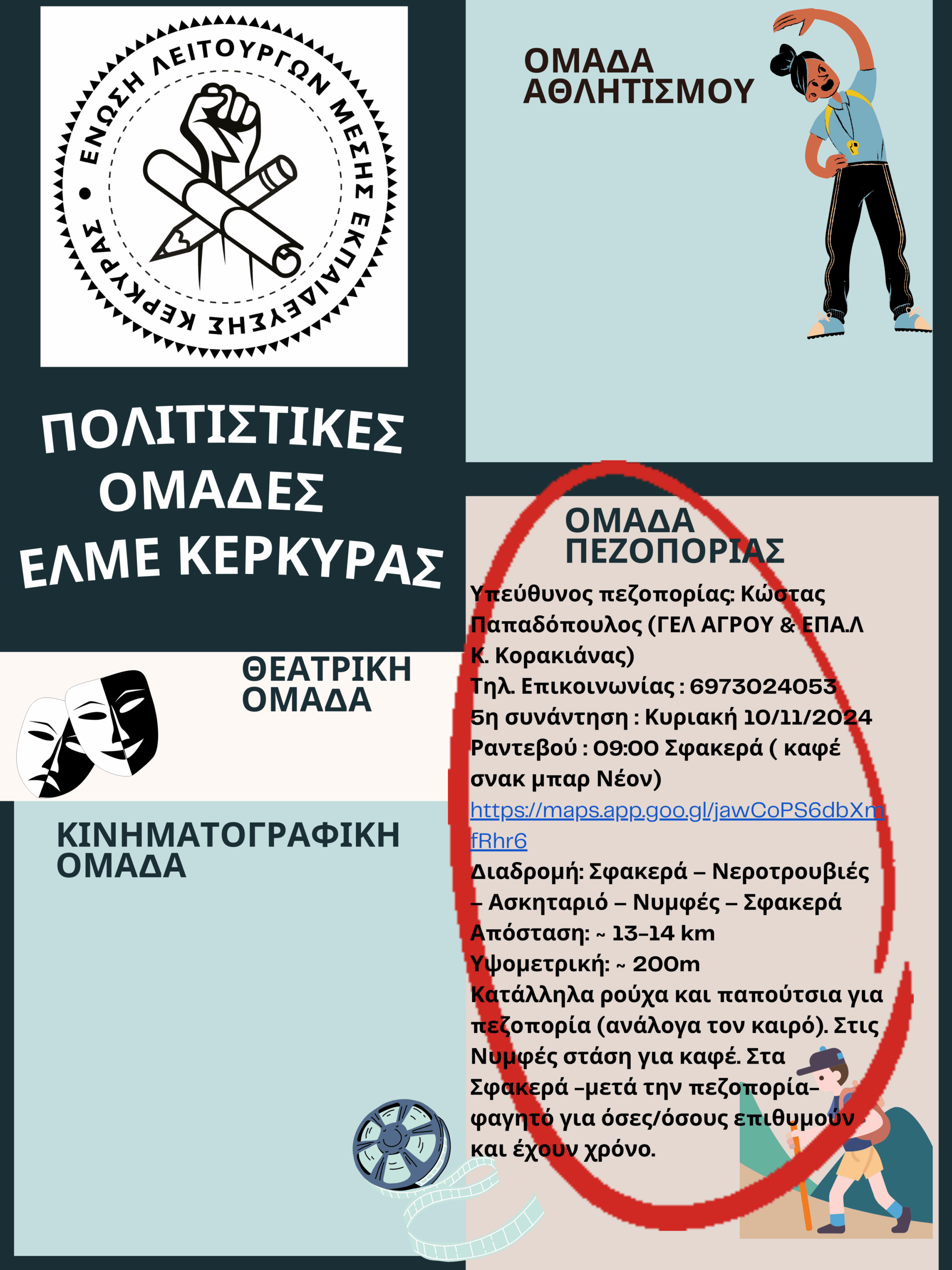 Υπεύθυνος πεζοπορίας: Κώστας Παπαδόπουλος (ΓΕΛ ΑΓΡΟΥ & ΕΠΑ.Λ Κ. Κορακιάνας)
