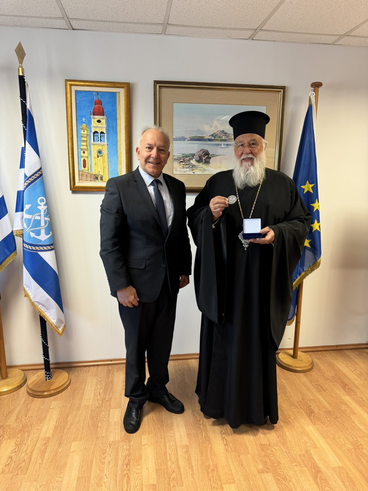 Τον Κερκυραίο Υφυπουργό Ναυτιλίας και Νησιωτικής Πολιτικής κ. Στέφανο Γκίκα επισκέφτηκε εθιμοτυπικά στο Υπουργείο ο Σεβασμιώτατος Μητροπολίτης Κερκύρας, Παξών και Διαποντίων Νήσων κ. Νεκτάριος το μεσημέρι της Τετάρτης 6 Νοεμβρίου 2024.