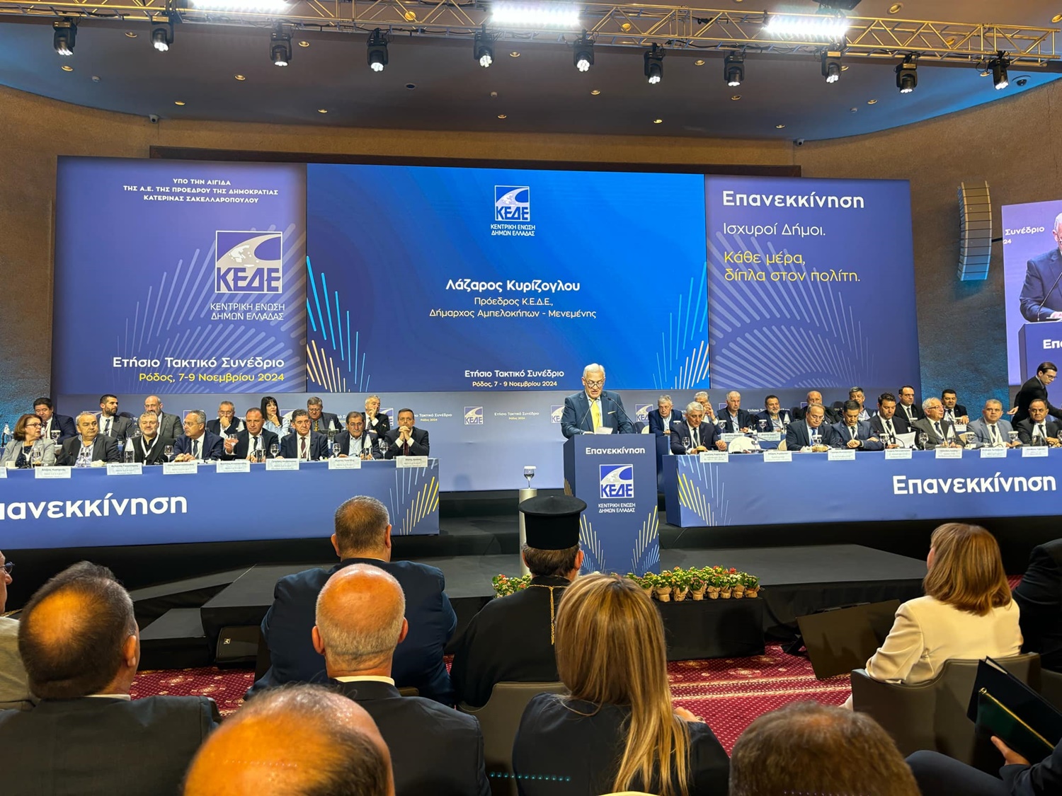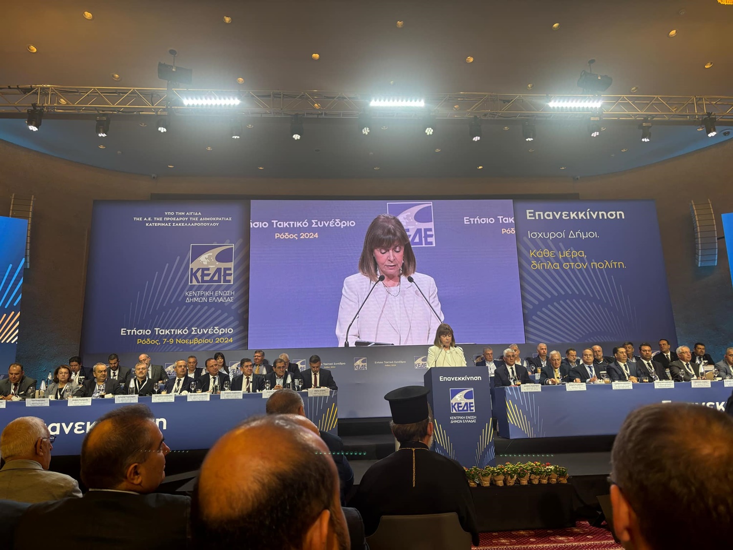 Παρουσία της Προέδρου της Δημοκρατίας Αικατερίνης Σακελλαροπούλου και του Υπουργού Εσωτερικών Θεόδωρου Λιβάνιου, άρχισαν σήμερα οι εργασίες του ετήσιου τακτικού συνεδρίου της Κεντρικής Ένωσης Δήμων Ελλάδας (ΚΕΔΕ), στη Ρόδο, του πρώτου της δημοτικής περιόδου 2024 – 2028.