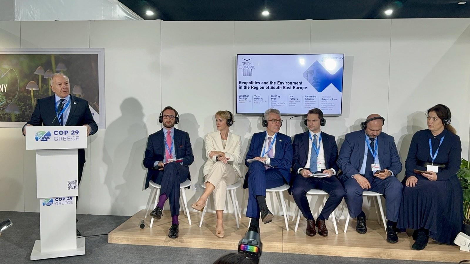 Ο Υφυπουργός Ναυτιλίας Στέφανος Γκίκας στο πλαίσιο της Ελληνικής Εκπροσώπησης στην 29η Διεθνή Διάσκεψη των Μερών Της Σύμβασης – Πλαισίου των Ηνωμένων Εθνών για την Κλιματική Αλλαγή, που πραγματοποιείται στο Μπακού του Αζερμπαϊτζάν, τοποθετήθηκε στο πολύ ενδιαφέρον πάνελ με θέμα: “Geopolitics and the Environment in the Region of SouthEast Europe"