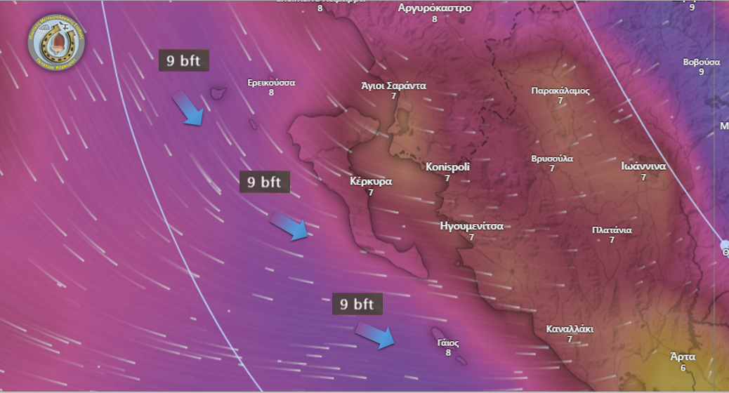 Βόρειο Ιόνιο: Σφοδρές έως θυελλώδεις βορειοδυτικούς ανέμους που θα φτάσουν έως 10 μποφόρ με ριπές και πτώση της θερμοκρασίας.