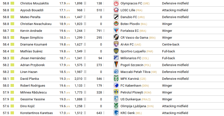 Μέσα σε αυτή τη λίστα των νεαρών παικτών βρίσκονται, τόσο ο Χρήστος Μουζακίτης του Ολυμπιακού, όσο και ο Κωνσταντίνος Καρέτσας της Γκενκ.