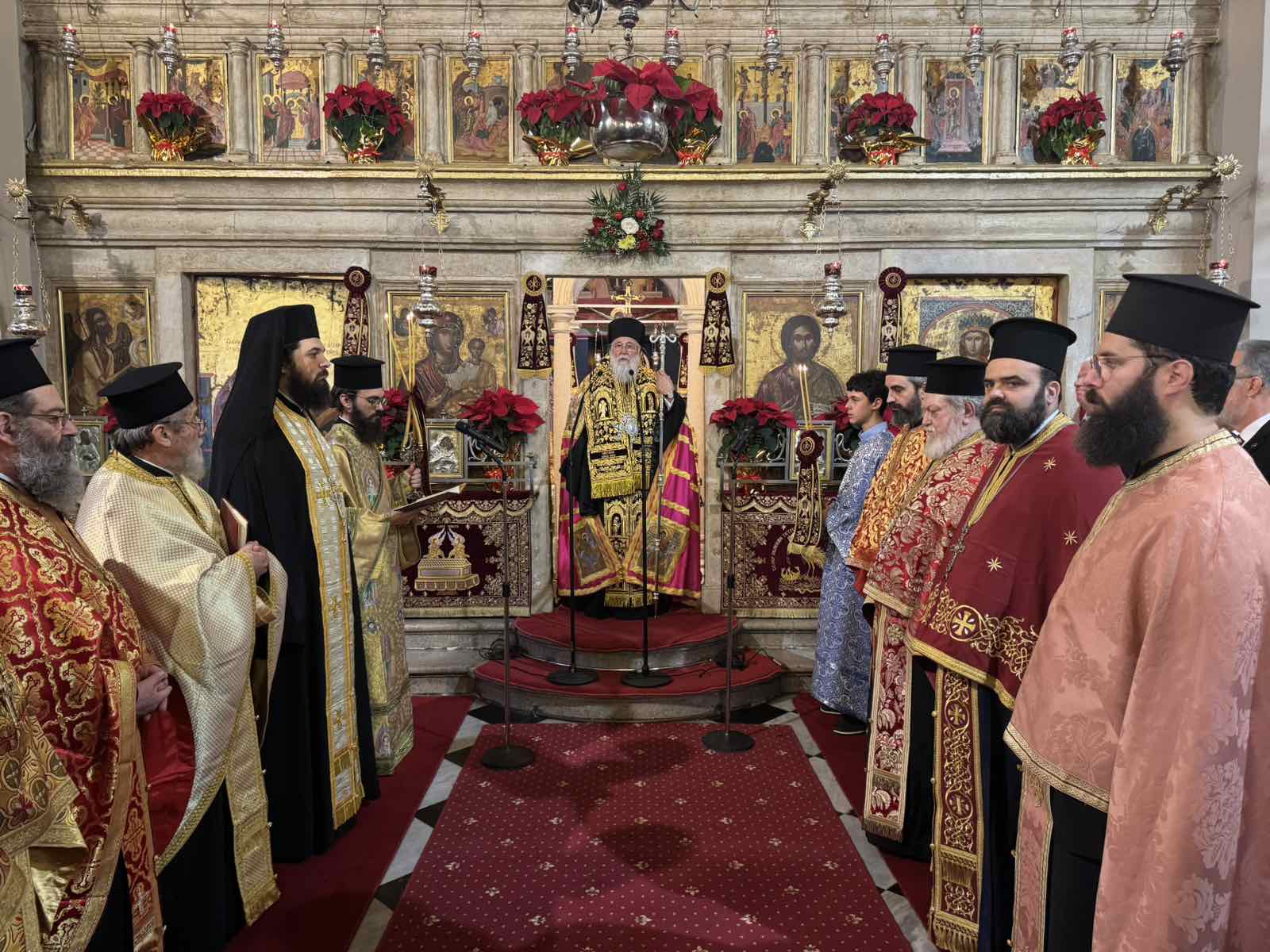 Στο τέλος της Θείας Λειτουργίας ο Σεβασμιώτατος ευχαρίστησε το πολυπληθές εκκλησίασμα το οποίο κατέκλυσε τον Ιερό Ναό και ευχήθηκε πατρικά, η νέα χρονιά να είναι γεμάτη από τη χάρη του Κυρίου μας Ιησού Χριστού από το έλεός Του, την καταλλαγή, την ειρήνη και την παύση των πολέμων που κρατούν σε συνοχή καρδίας όλους τους λαούς της Γης. Ιδιαίτερα, ευχήθηκε στους εορτάζοντας και τις εορτάζουσες.