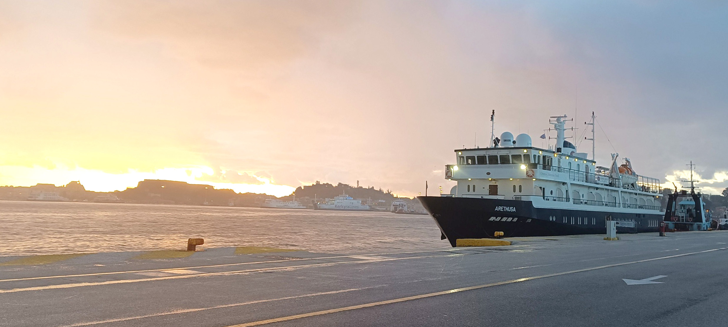 Ποδαρικό στο Λιμάνι έκαναν δύο κρουαζιερόπλοια, τα πρώτα του 2025, τα ξημερώματα της πρωτοχρονιάς. Το ένα ήταν το πλοίο της MSC και το δεύτερο, το Arethusa της Viking.