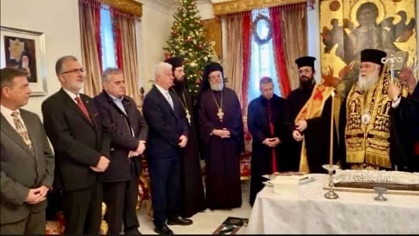 Παρουσία των εκπροσώπων των τοπικών αρχών η κοπή της πρωτοχρονιάτικης πίτας της Εκκλησίας από το μητροπολίτη Νεκτάριο, στο Επισκοπείο.