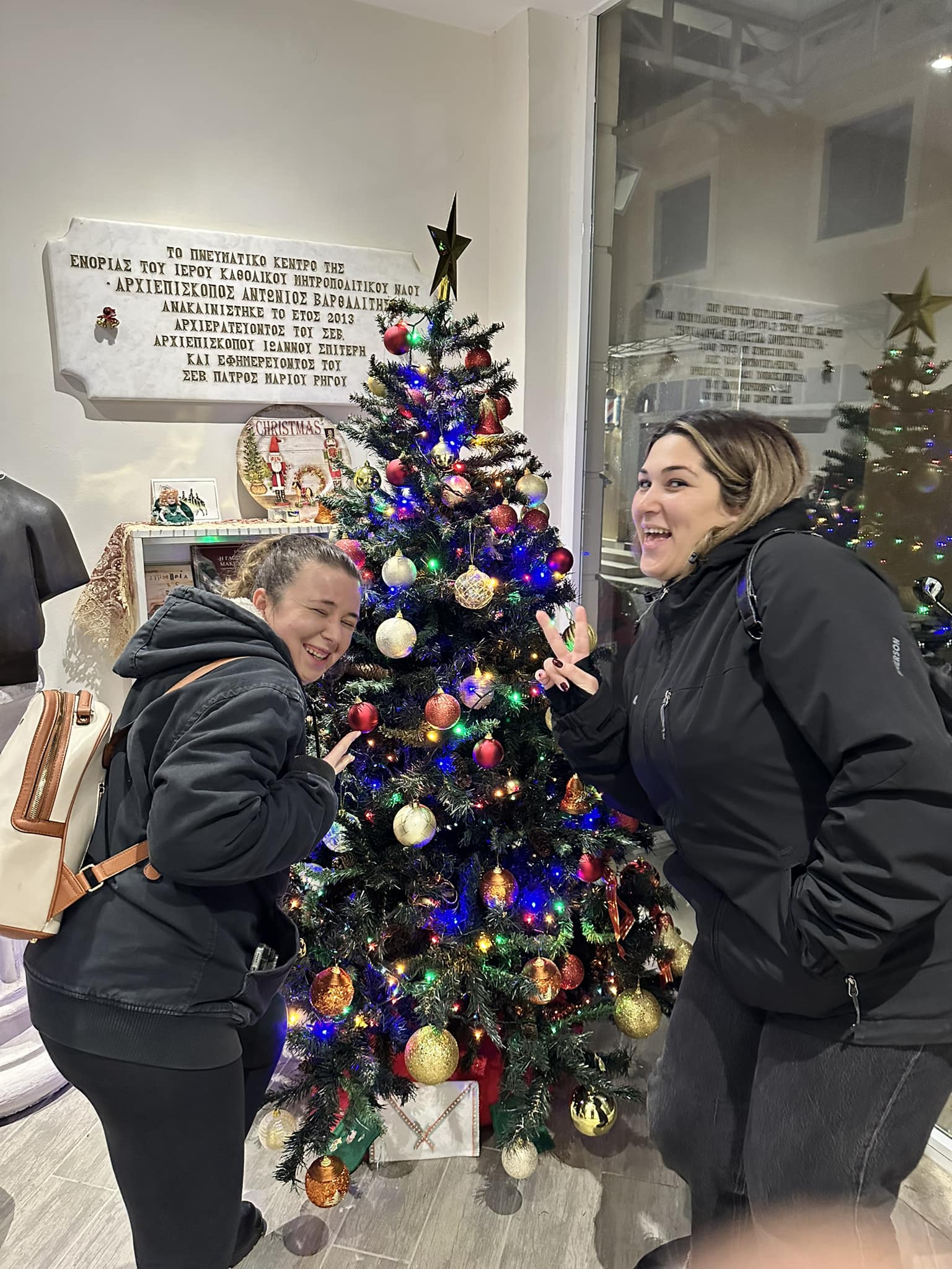 Με τις εμψυχώτριες και τους εμψυχωτές της νεολαίας της Καθολικής Εκκλησίας, ο στολισμός στο πνευματικό κέντρο για τις γιορτές.