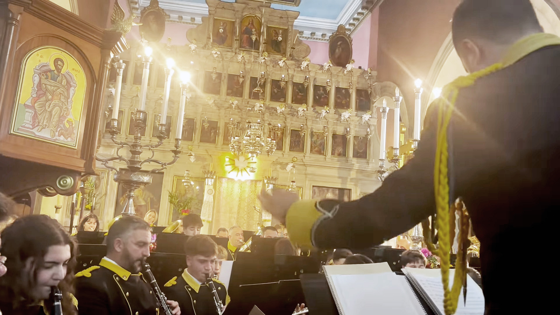 Από την εορταστική συναυλία της ΦΙΛΑΡΜΟΝΙΚΗΣ ΣΙΝΑΡΑΔΩΝ, στην κατάμεστη ευρύχωρη και πανέμορφη εκκλησία του Αγίου Νικολάου υπό το μαέστρο Αλέξανδρο Κοσκινά.