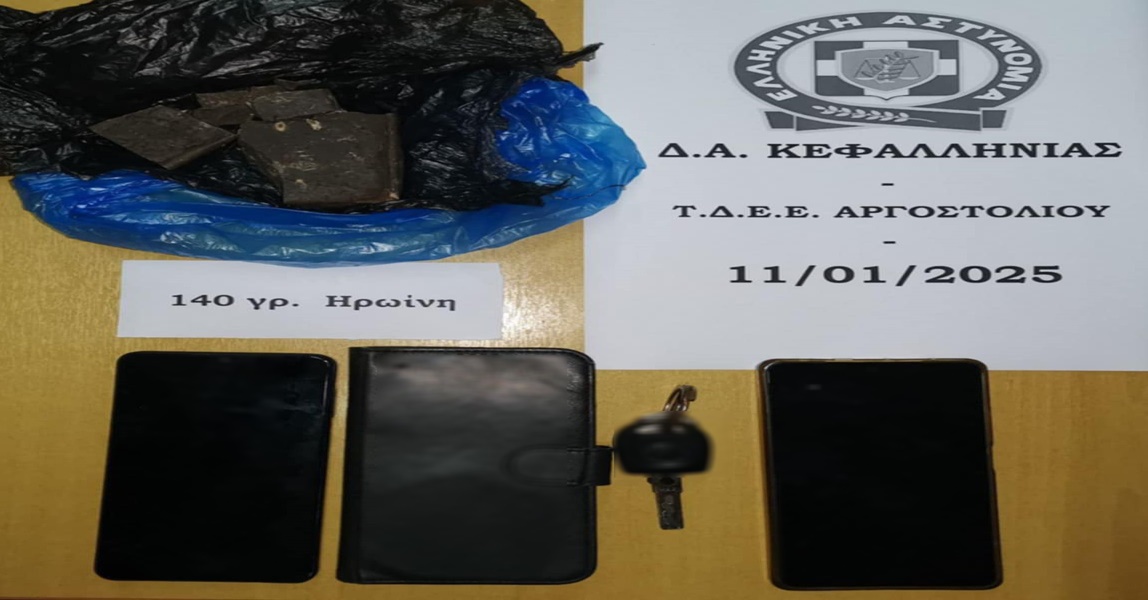 Κατασχέθηκαν -140- γραμμάρια ηρωίνης, ναρκωτικά δισκία, κινητά τηλέφωνα και αυτοκίνητο
