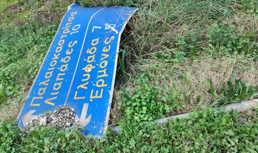 2.Σήμανση ελλιπέστατη έως καθόλου. Κατεστραμμένες πινακίδες πεταμένες εδώ κι εκεί, άλλες χωμένες μέσα στην βλάστηση.