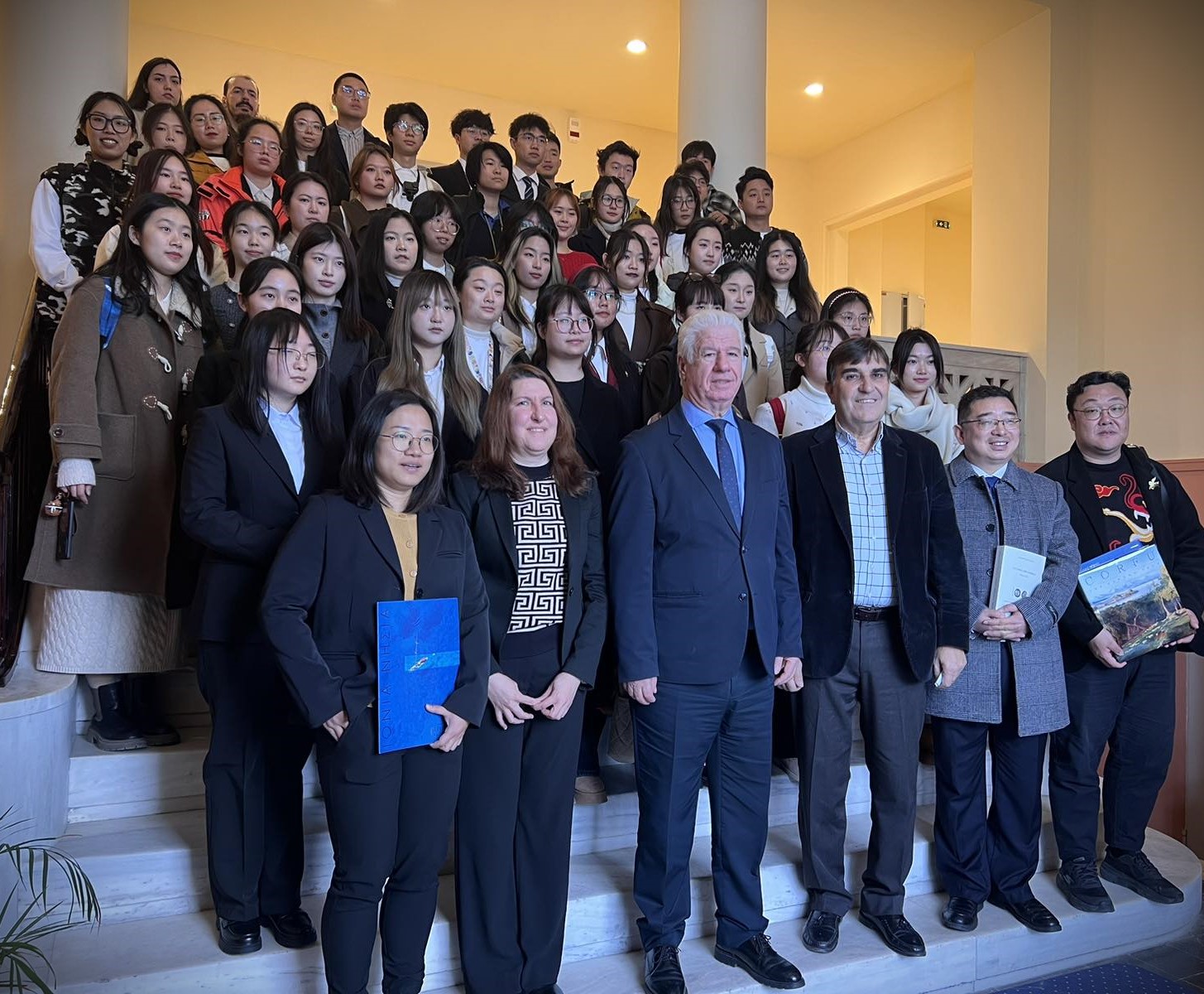Η πολυάριθμη αποστολή των Κινέζων φοιτητών, οι οποίοι συνοδεύονταν από τους καθηγητές τους, κ.κ. Aimin Liao (Admission Officer and Vice Director of Students Affairs Office, Sichuan University), Liang Zhonghe (Co-researcher of Centre Pépin au CNRS, France, Adjunct professor of Centre for the Study of the Platonic Tradition, Trinity College Dublin, Department of Philosophy, Sichuan University) και Liang Ping (Programme Officer, International Affairs Office, Sichuan University), επισκέφθηκε τον Περιφερειάρχη στο πλαίσιο του προγράμματος Immersion programme for exploring ancient Greek civilization του Εργαστηρίου Μελέτης Αρχαίου Κόσμου του τμήματος Ιστορίας του Ιονίου Πανεπιστημίου, με διοργανωτές τους καθηγητές, κ.κ. Αθανάσιο Ευσταθίου (Καθηγητής Αρχαίας Ελληνικής Γλώσσας και Γραμματείας στο τμήμα Ιστορίας του Ιονίου Πανεπιστημίου και Διευθυντής του Εργαστηρίου Μελέτης του Αρχαίου Κόσμου), Πολυξένη Στρόλογγα (Επίκουρος Καθηγήτρια Αρχαίας Ελληνικής Ιστορίας στο τμήμα Ιστορίας, Ιόνιο Πανεπιστήμιο) και Κωνσταντίνο Στέφου (Δόκτωρ Κλασικής Φιλολογίας).