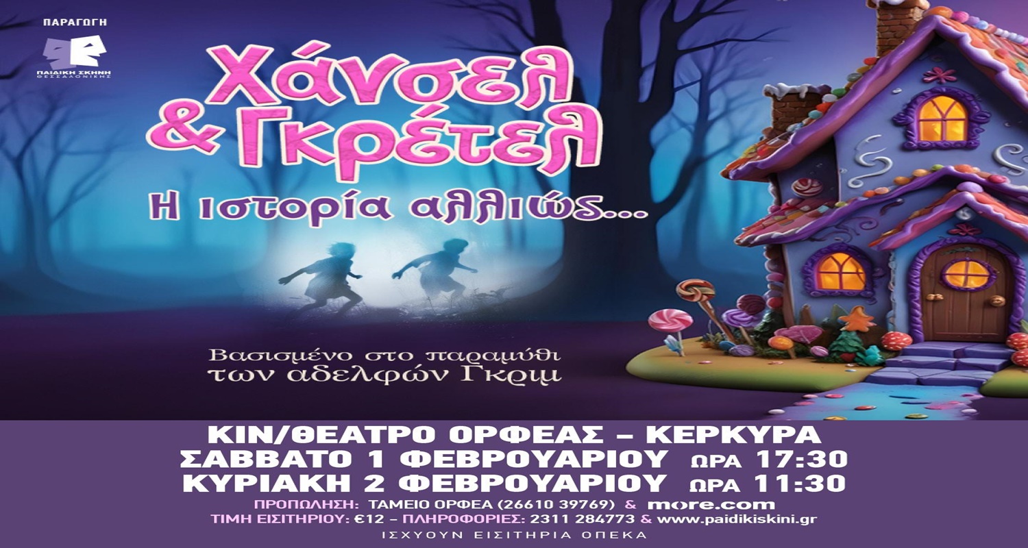 Η Παιδική Σκηνή Θεσσαλονίκης υποδέχεται τη νέα σεζόν με μια αλλιώτικη ιστορία, βασισμένη στο κλασικό παραμύθι των αδελφών Γκριμ, «Χάνσελ και Γκρέτελ». Σε διασκευή και στίχους τραγουδιών Σοφίας Δημοπούλου, σκηνοθεσία Πασχάλη Αραμπατζή και μουσική Αίσωνα, η μουσικοχορευτική παράσταση «Χάνσελ και Γκρέτελ: Η ιστορία αλλιώς» έρχεται στο Κινηματοθέατρο Ορφέας, για δύο μόνο παραστάσεις στις 1 Φεβρουαρίου στις 17:30 και στις 2 Φεβρουαρίου στις 11:30.