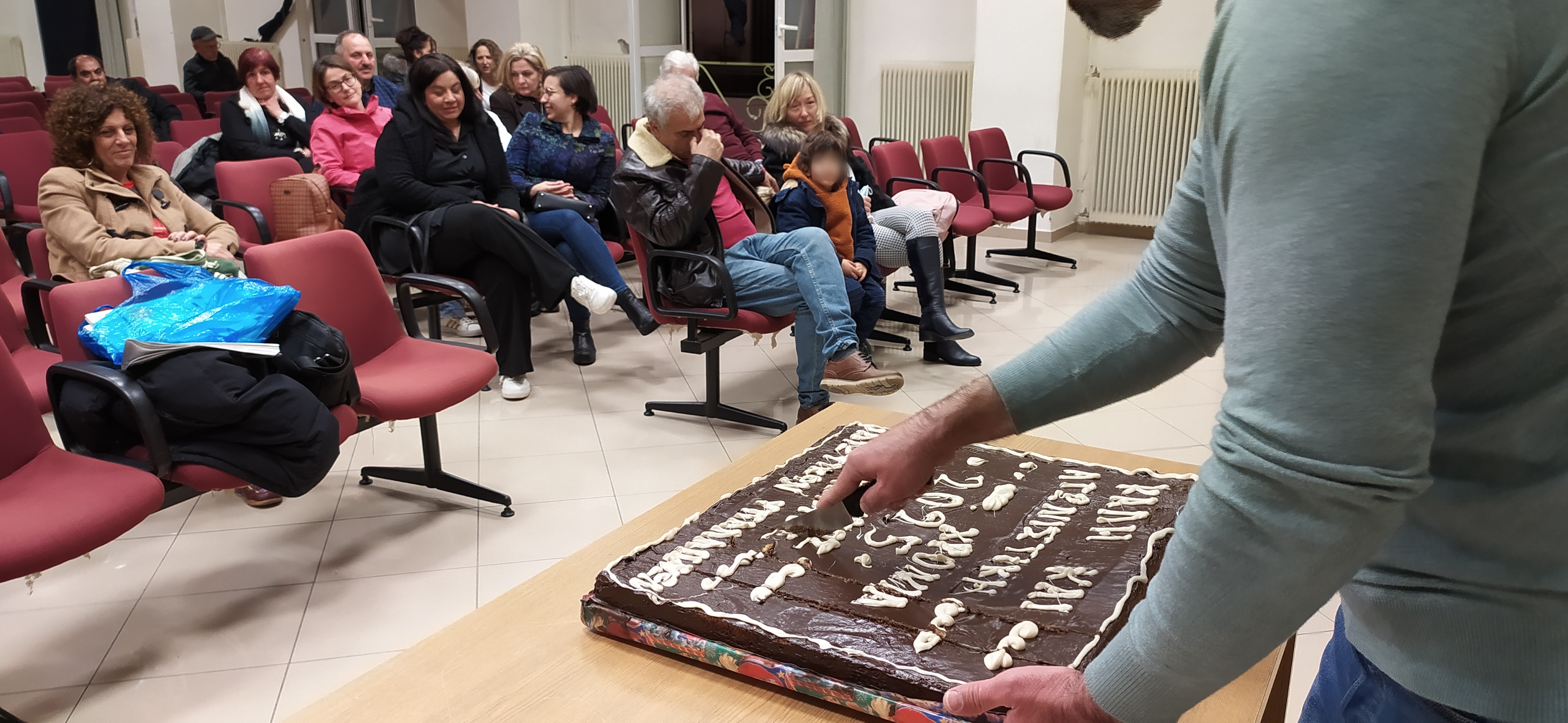 Ακολούθησε η κοπή της πίτας, όπου το φλουρί βρήκε συναδέλφισσα συμβασιούχα στην καθαριότητα των σχολείων του Δήμου Κεντρικής Κέρκυρας, η οποία ως δώρο πήρε ένα βιβλίο με τίτλο «Το παλαιστινιακό ζήτημα».