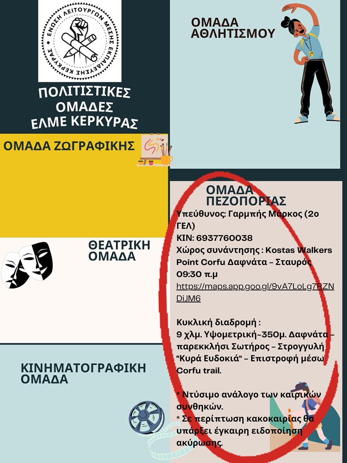 *Υπεύθυνος πεζοπορίας*: Κώστας Παπαδόπουλος (ΓΕΛ ΑΓΡΟΥ & ΕΠΑ.Λ Κ. Κορακιάνας)