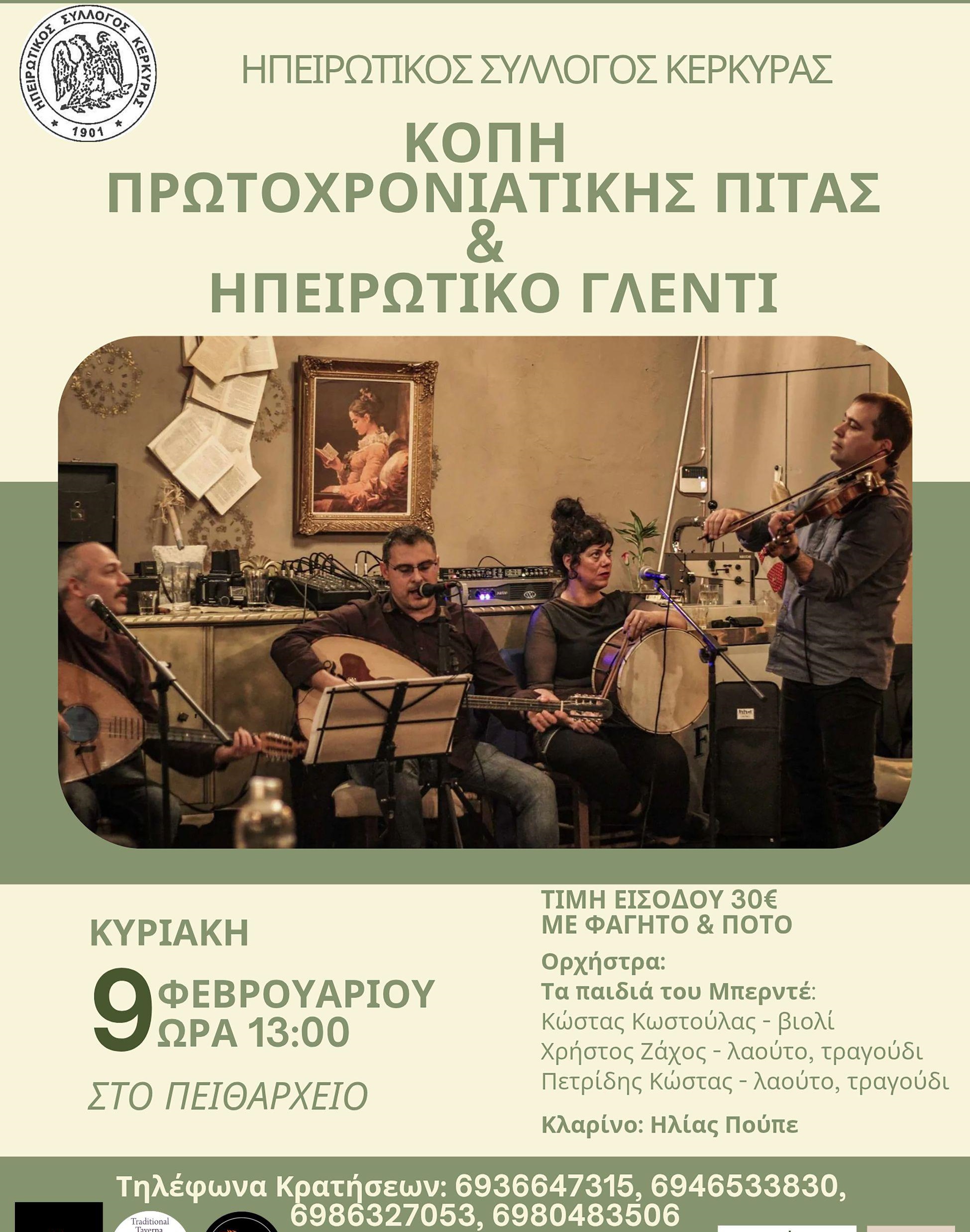Ηπειρωτικό γλέντι και κοπή της πρωτοχρονιάτικης πίτας του Ηπειρωτικού Συλλόγου Κέρκυρας την Κυριακή στις μια το μεσημέρι στο ΠΕΙΘΑΡΧΕΙΟ.