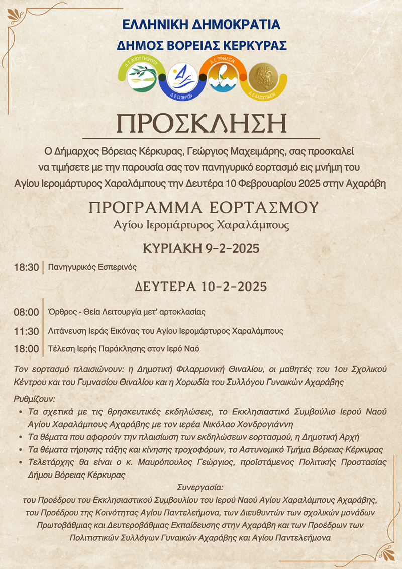 CorfuPress.com > Blog > ΕΙΔΗΣΕΙΣ > ΕΛΕΥΘΕΡΟ > ΚΟΙΝΩΝΙΑ > H Aχαράβη γιορτάζει τον Άγιο Χαράλαμπο
