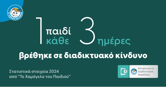- Διαχειρίζεται αναφορές και περιστατικά μέσω της Εθνικής Γραμμής για τα Παιδιά SOS1056 και του Chat1056 – το 2024 διαχειρίστηκε περιστατικά διαδικτυακού κινδύνου για 114 παιδιά. Οι βασικότερες αιτίες ήταν η προβληματική χρήση διαδικτύου και ο ηλεκτρονικός σεξουαλικός εκβιασμός – Sextortion και υποστήριξε 3 παιδιά αναφορικά με υλικό διαδικτυακής σεξουαλικής κακοποίησης – εκμετάλλευσης ανηλίκων, σε συνεργασία με τη Διεύθυνση Δίωξης Ηλεκτρονικού Εγκλήματος της ΕΛ.ΑΣ.