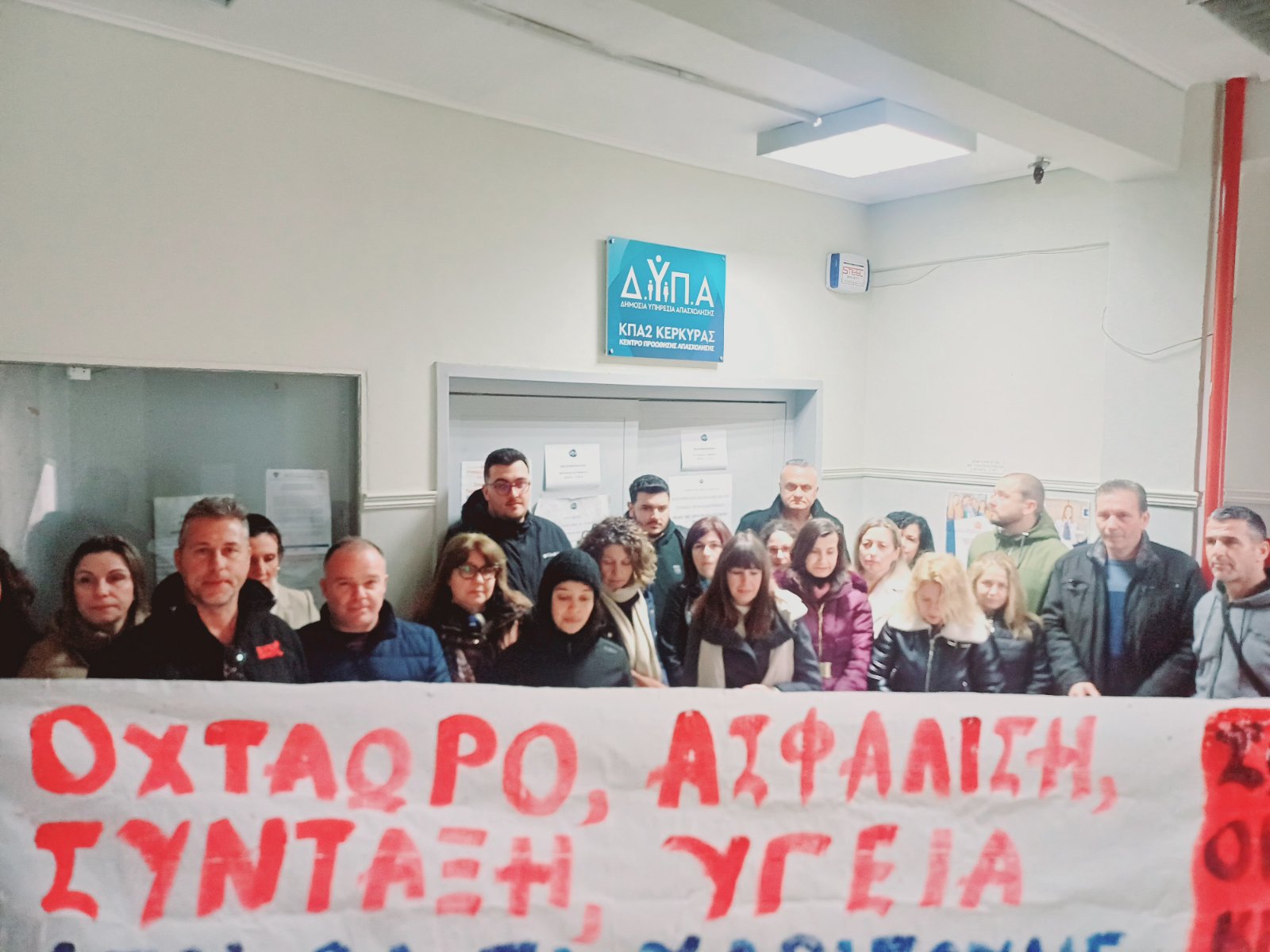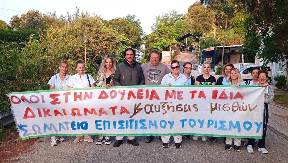 Στο πλαίσιο της σημερινής παράστασης διαμαρτυρίας του Εργατικού Κέντρου για διάφορα ζητήματα που αφορούν τους εργαζόμενους, αναδείξαμε το πρόβλημα που αντιμετωπίζουν 30 περίπου εργαζόμενοι στο ξενοδοχείο SANDY, οι οποίοι εξ αιτίας λάθους της επιχείρησης κατά την διαδικασία μεταβίβασης του ξενοδοχείου από την MEEITING POINT στην 3 R ΚΟΡΦΟΥ ΙΚΕ δεν λαμβάνουν επίδομα ανεργίας , κινδυνεύουν να τιμωρηθούν από την ΔΥΠΑ με πρόστιμο και να χάσουν το επίδομα ανεργίας την επόμενη χρονιά.