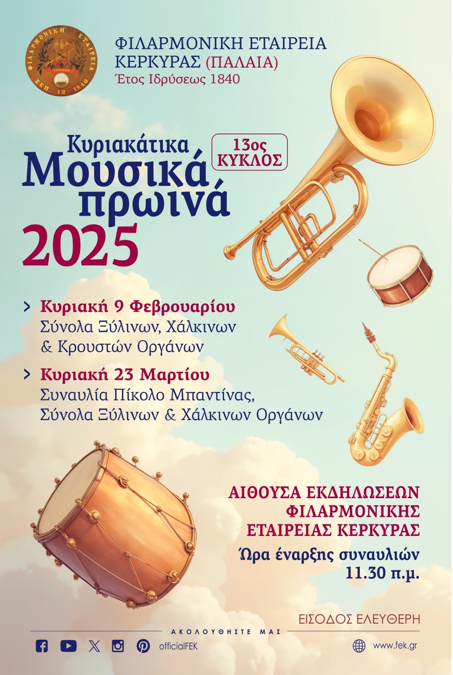 Την Κυριακή 23 Φεβρουαρίου στις 7:30 μ.μ. στο Δημοτικό Θέατρο Κέρκυρας, η μπαντίνα της Παλαιάς Φιλαρμονικής θα μας ταξιδεύει σε μια μουσική βραδιά γεμάτη κινηματογραφική μουσική και αγαπημένα ελληνικά ροκ ακούσματα με την σύμπραξη του «Rock School Corfu» (προετοιμασία – επιμέλεια των Δημήτρη Δουρτμέ και Χριστίνας Μεταλληνού).