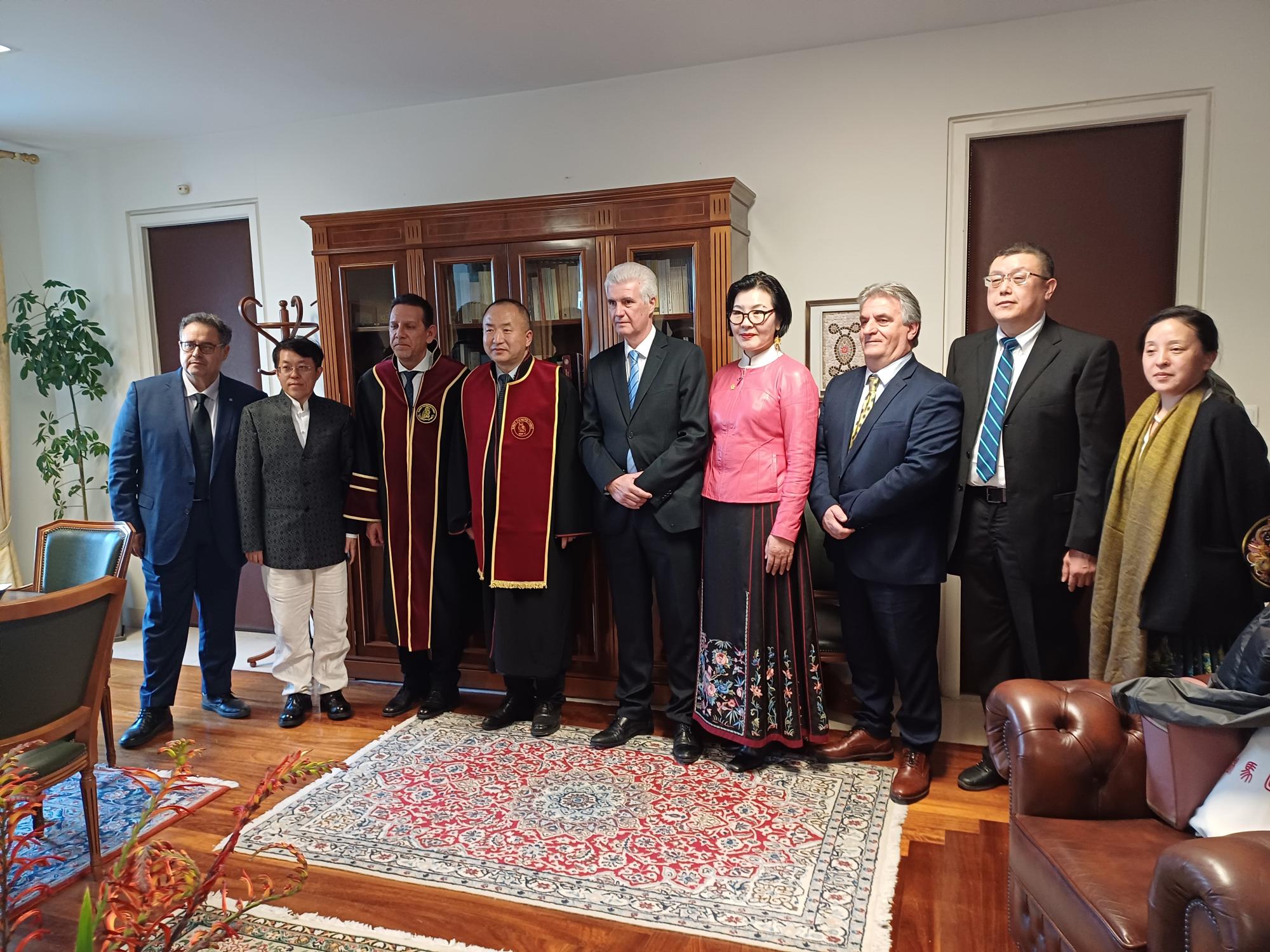H τελετή αναγόρευσης του διακεκριμένου Καθηγητή Αρχαίας και Σύγχρονης Κινεζικής Λογοτεχνίας και Κινεζικού Πολιτισμού στο Πανεπιστήμιο Γλώσσας και Πολιτισμού του Πεκίνου (BLCU) και Διευθυντή του Παγκόσμιου Κέντρου Σινολογίας, Xu Baofeng, σε Επίτιμο Διδάκτορα του Τμήματος Ξένων Γλωσσών, Μετάφρασης και Διερμηνείας του Ιονίου Πανεπιστημίου πραγματοποιήθηκε το Σάββατο 15 Φεβρουαρίου 2025, στις 16:00, στην Αίθουσα Τελετών της Ιονίου Ακαδημίας, με κάθε επισημότητα, όπως ορίζεται από το πρωτόκολλο του Ιονίου Πανεπιστημίου και παρουσία του Έκτακτου και Πληρεξούσιου Πρέσβη της Λαϊκής Δημοκρατίας της Κίνας στην Ελληνική Δημοκρατία, Fang Qiu, του Πρέσβη της Ελληνικής Δημοκρατίας στη Λαϊκή Δημοκρατία της Κίνας, Ευγένιου – Δημήτριου Καλπύρη, του Υφυπουργού Ναυτιλίας και Νησιωτικής Πολιτικής, Στέφανου Γκίκα, εκπροσώπων των τοπικών Αρχών και τα μέλη της Συγκλήτου του Ιονίου Πανεπιστημίου.