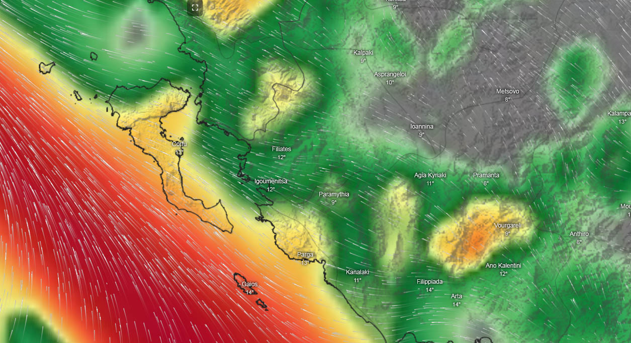 Η θερμοκρασία δεν θα υποχωρήσει, εξαιτίας ισχυρών νότιων ανέμων, έτσι το μεσημέρι δε θα ξεπεράσει τους 15°C στα πεδινά και στα παράλια του Β. Ιονίου, τους 12°C στα ημιορεινά και τους 10°C στα ορεινά.