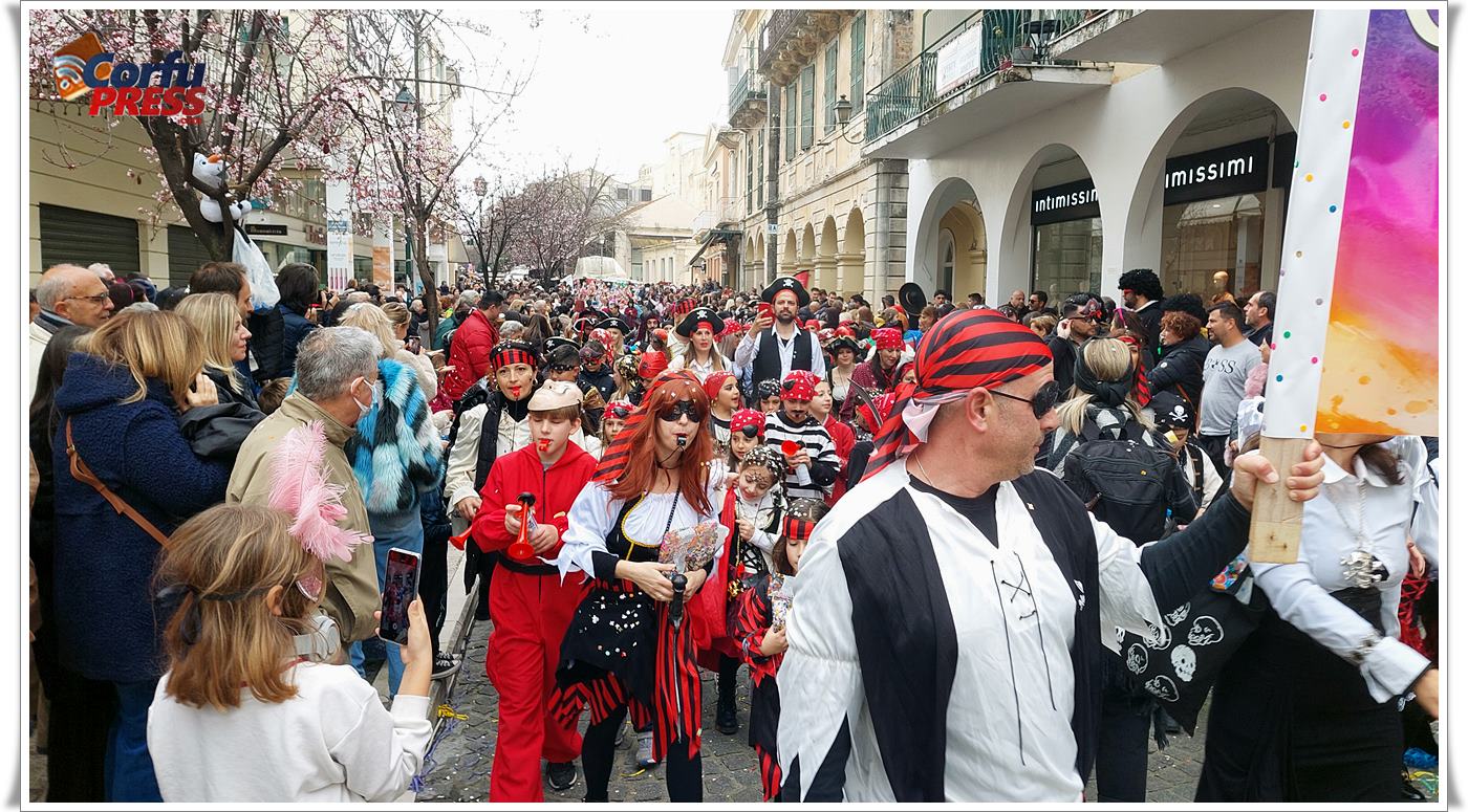 Χιλιάδες Κερκυραίοι και επισκέπτες πλημμύρισαν τους δρόμους, απολαμβάνοντας δεκάδες γκρουπ και άρματα που έδωσαν ζωή σε θέματα εμπνευσμένα από τον κινηματογράφο, τη λογοτεχνία, αλλά και την τρέχουσα επικαιρότητα.