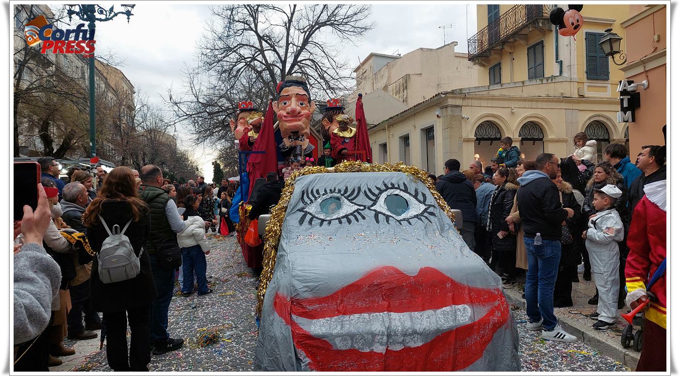 Χιλιάδες Κερκυραίοι και επισκέπτες πλημμύρισαν τους δρόμους, απολαμβάνοντας δεκάδες γκρουπ και άρματα που έδωσαν ζωή σε θέματα εμπνευσμένα από τον κινηματογράφο, τη λογοτεχνία, αλλά και την τρέχουσα επικαιρότητα.