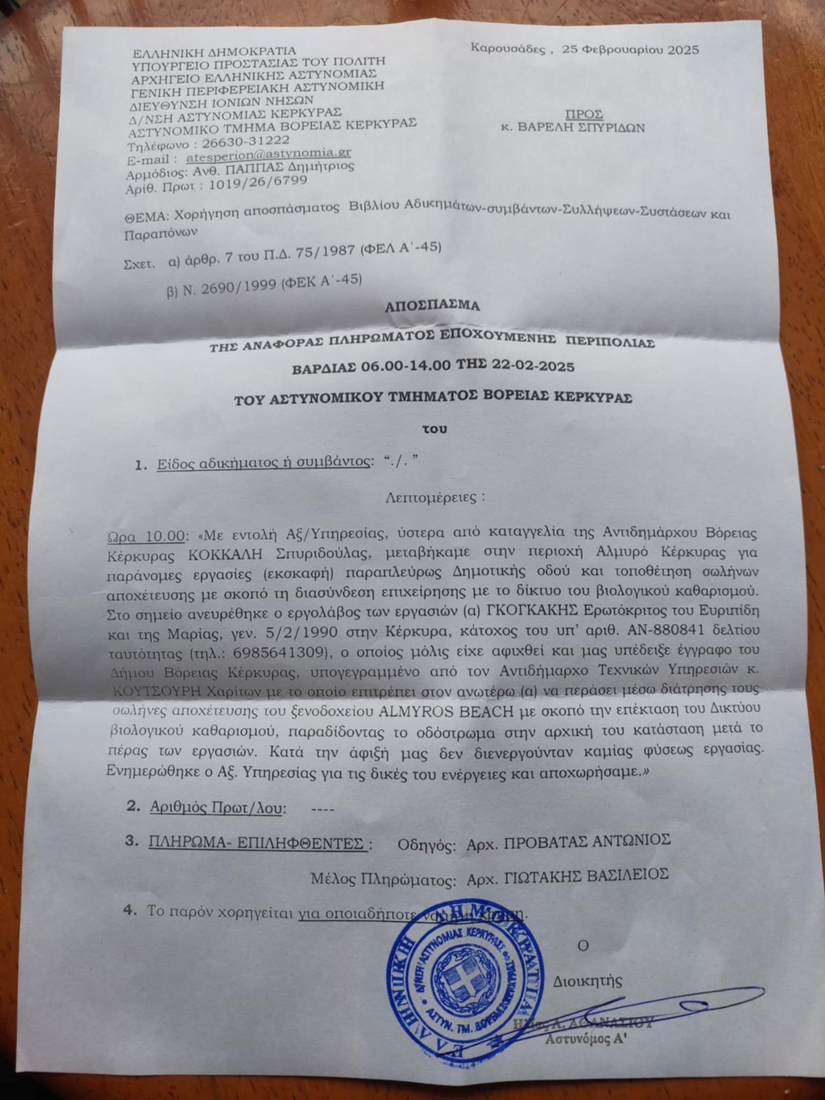 ΔΗΜΟΤΙΚΗ ΑΡΧΗ ΒΟΡΕΙΑΣ ΚΕΡΚΥΡΑΣ ΣΕ ΠΛΗΡΗ ΣΥΓΧΥΣΗ