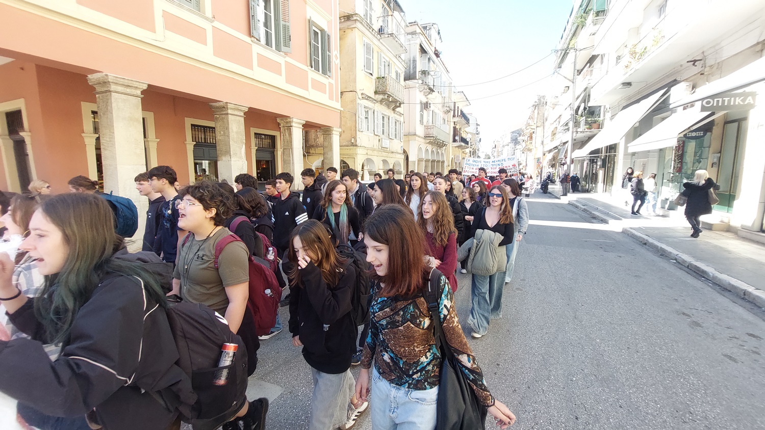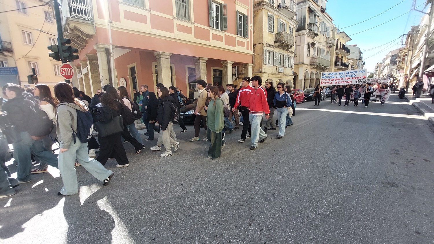 Δυναμική ήταν η παρουσία των μαθητών και φοιτητών στο συλλαλητήριο που διοργάνωσαν στην Κέρκυρα για την τραγωδία των Τεμπών.