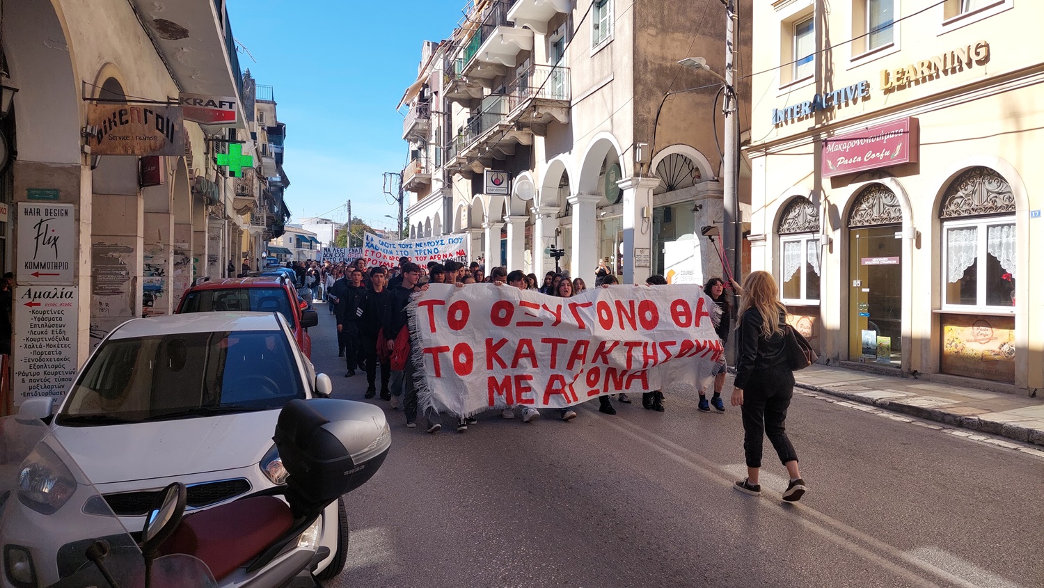 Δυναμική ήταν η παρουσία των μαθητών και φοιτητών στο συλλαλητήριο που διοργάνωσαν στην Κέρκυρα για την τραγωδία των Τεμπών.
