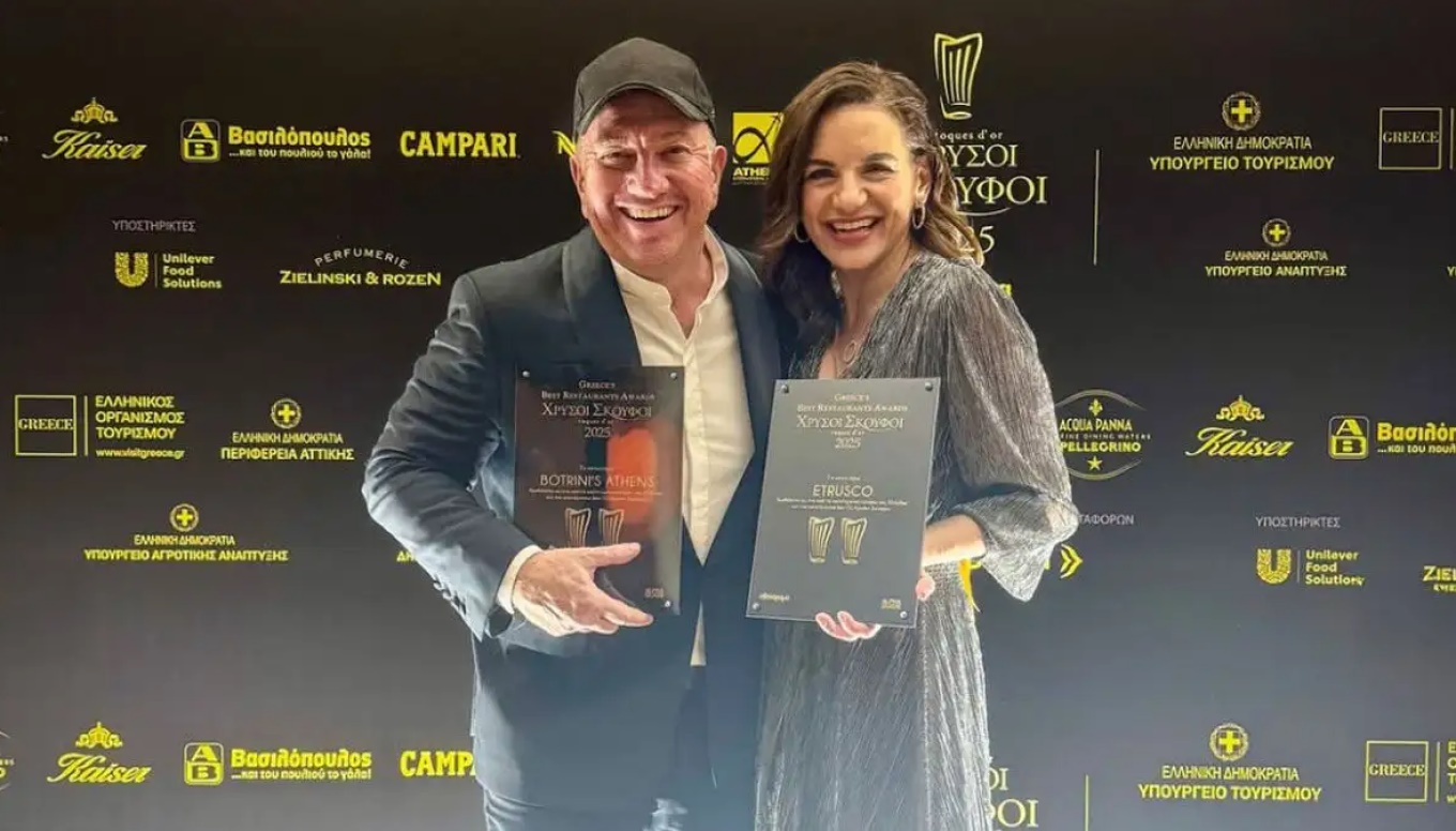 Το κερκυραϊκό «Etrusco» του Έκτορα Μποτρίνι θριάμβευσε για άλλη μία χρονιά στο γαστρονομικό σαφάρι των Χρυσών Σκούφων, διατηρώντας την πρωτιά για 13η χρονιά ανάμεσα στα καλύτερα εστιατόρια της Ελλάδας. Η υπουργός Τουρισμού Όλγα Κεφαλογιάννη απένειμε το βραβείο. Στη δεύτερη θέση της κατάταξης βρέθηκαν τα εστιατόρια Botrini’s Athens και Delta.
