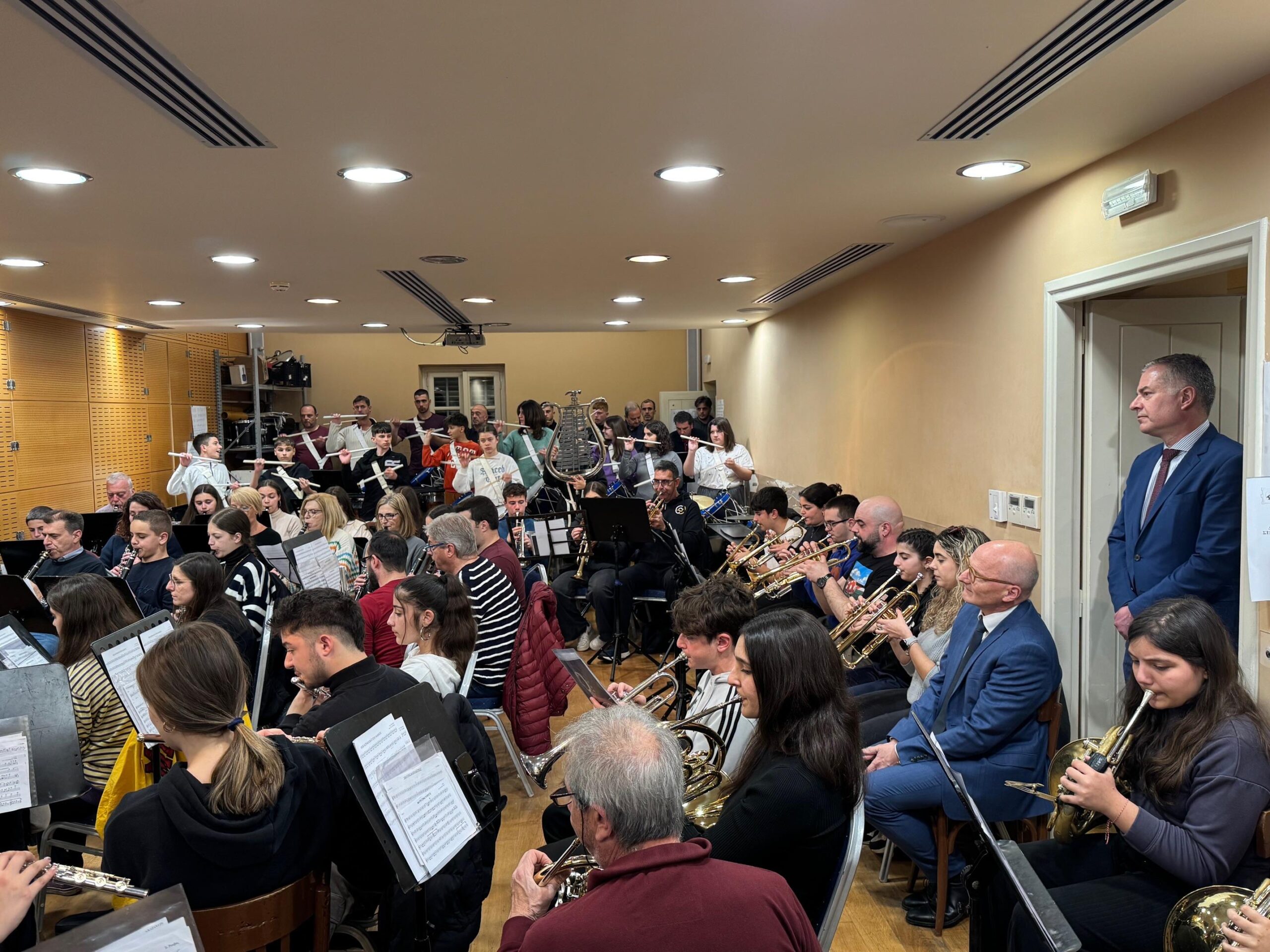 Κατά την παρουσία του, ξεναγήθηκε στην Φιλαρμονική και συζήτησε με τον Πρόεδρο κ. Ιωάννη Τριβιζά και μέλη του ΔΣ της Φιλαρμονικής, καθώς και με τον Αρχιμουσικό κ. Σωκράτη Άνθη, όπως και τον αν. Αρχιμουσικό κ. Σπύρο Ρουβά.
