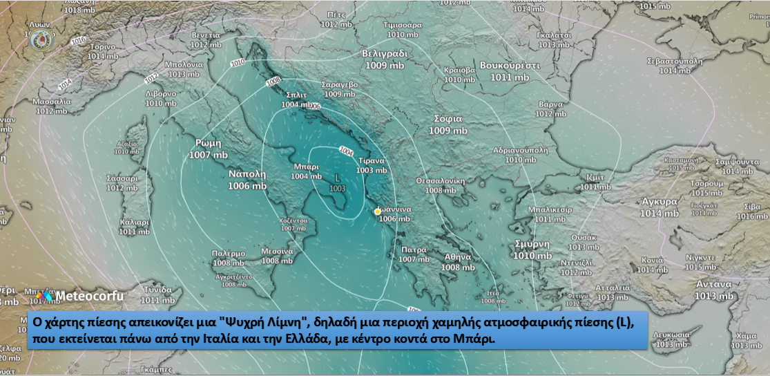 Κατά τη διάρκεια των φαινομένων—με βροχές, χαλαζοπτώσεις και καταιγίδες—οι άνεμοι στο Βόρειο Ιόνιο θα φυσούν από νότιες διευθύνσεις. Αυτό οφείλεται στην κυκλοφορία των ανέμων γύρω από το χαμηλό βαρομετρικό που βρίσκεται κοντά στην Αδριατική θάλασσα.
