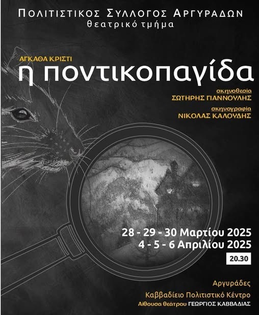 Οι παραστάσεις που απομένουν είναι για τις ημερομηνίες: 30 Μαρτίου, 4.5,6 Απριλίου 2025. Ώρα έναρξης παραστάσεων 8.30μ.μ. Στην αίθουσα θεάτρου Γεώργιος Καββαδίας, Αργυράδες. Κρατήσεις: 26620 52040