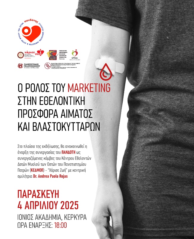 «Ο Ρόλος του Marketing στην Εθελοντική Προσφορά Αίματος και Βλαστοκυττάρων» και παρουσίαση του «Πανδότη» συνεργαζόμενου Κόμβου (ΚΕΔΜΟΠ)- “Χάρισε Ζωή”
