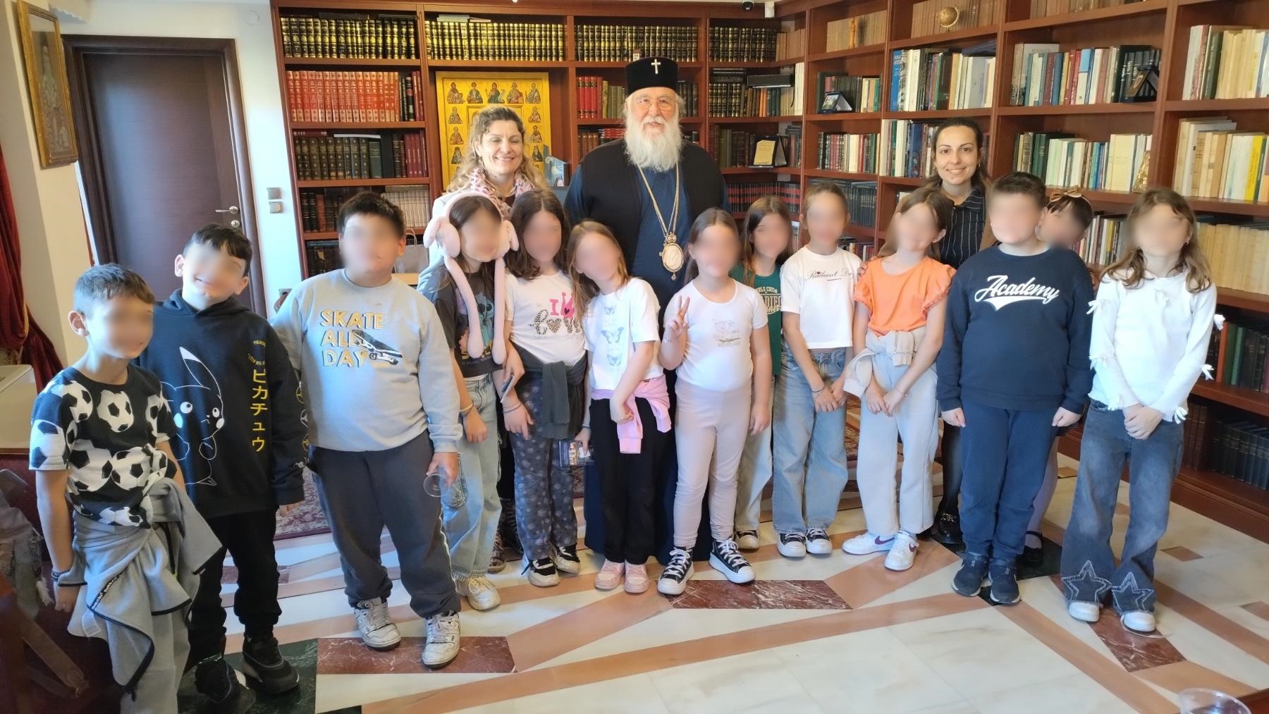 Τα παιδιά συνόδευαν η διευθύντρια κ. Σπυριδούλα Κούρκουλου και η δασκάλα της τάξης. Οι μαθητές και οι μαθήτριες ζήτησαν να συναντήσουν τον Μητροπολίτη, για να τους μιλήσει για το Πάσχα και την Μεγάλη Εβδομάδα.