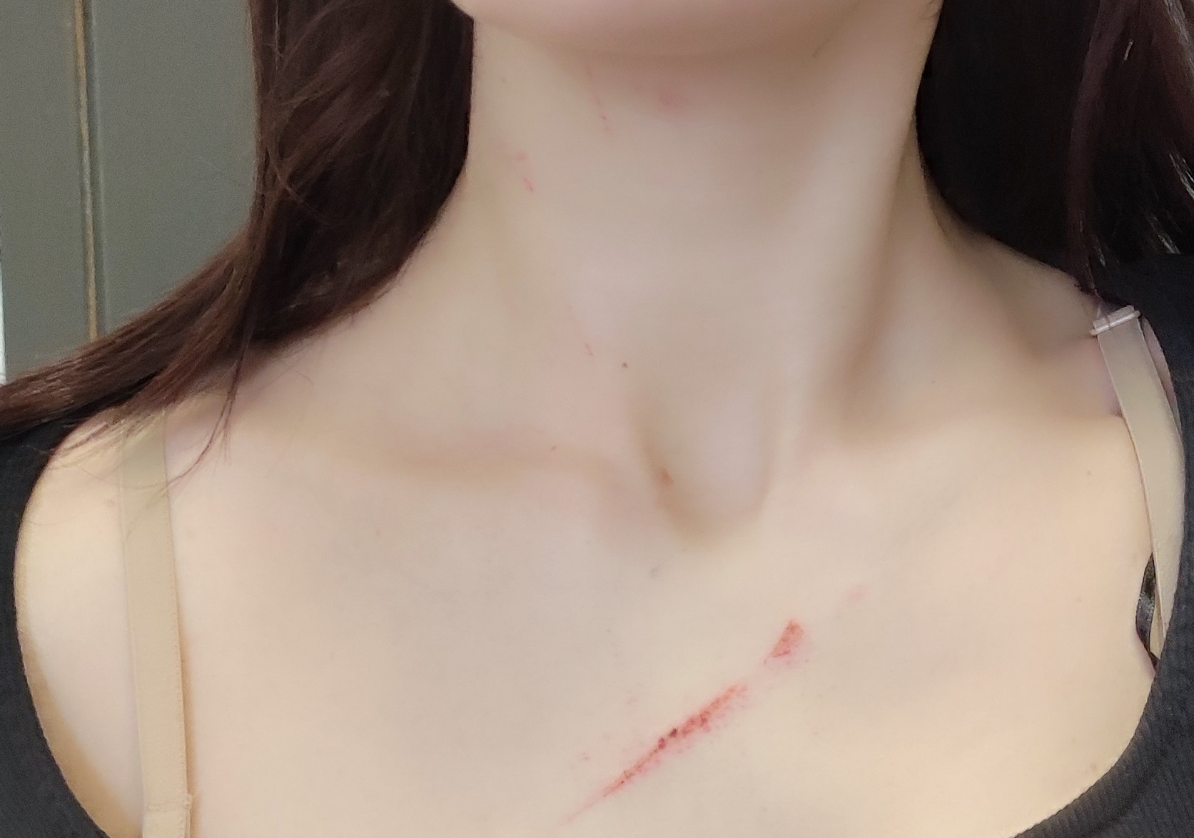 Η 22χρονη κατέθεσε στο Δικαστήριο και δηλώνει και δημόσια ότι λυπάται βαθύτατα και μετάνιωσε για ότι έγινε ,ζητάει συγγνώμη. Μετάνιωσε γιατί ανταπέδωσε στην επίθεση που απρόκλητα δέχθηκε, μετάνιωσε γιατί δεν έτρεξε να φύγει από το club και ας την έλεγαν δειλή. Δέχθηκε απρόκλητα πολλά κτυπήματα που της προκάλεσαν επικίνδυνες σωματικές βλάβες. Κτυπήματα με μπουκάλι, κτυπήματα με γροθιές και με κλωτσιές, χτυπήματα με πέτρες και κομμάτια από μάρμαρα καταδιωκόμενη από πολυμελή ίσως ομάδα, Δάγκωμα στο χέρι και σοβαρό τραύμα με αφαίρεση σάρκας από το μεσαίο δάκτυλο. Μάτωσε , όπως φαίνεται και σε μερικές από τις φωτογραφίες. Βρέθηκε σε κατάσταση σύχγυσης , πανικού και μεγάλου φόβου οπότε έβγαλε το σουγιαδάκι για προστασία της, για άμυνά της χωρίς πρόθεση να επιφέρει το παραμικρό πλήγμα στην έτερη νεαρά. Το είχε μαζί της διότι στην Αθήνα που σπουδάζει είχε κυνηγηθεί και υπήρξε απόπειρα βιασμού σε βάρος της . Είναι αυτή που κάλεσε την αστυνομία(100) να έλθει προς βοήθεια. Και πάλι λυπάται και μετανιώνει.